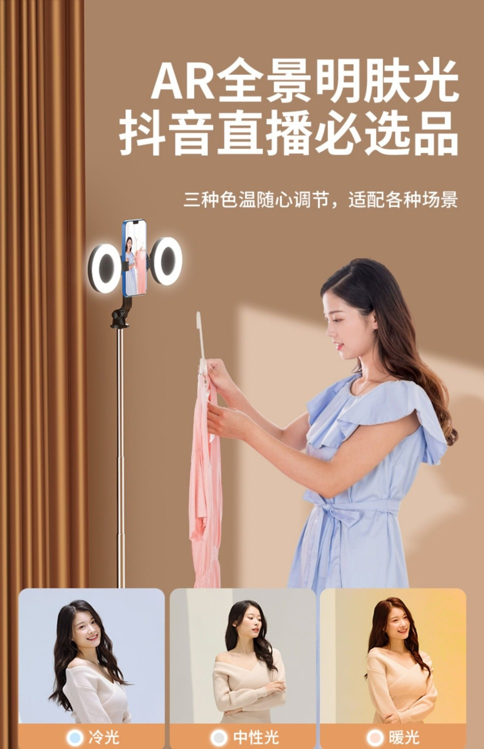 • T12 화이트 듀얼 라이트 모델 [ 1.7m 알루미늄 합금 일체형 셀카봉 + 충전 다기능 블루투스 리모콘 + 대형 원형 조명 2개, 3색 및 9레벨]