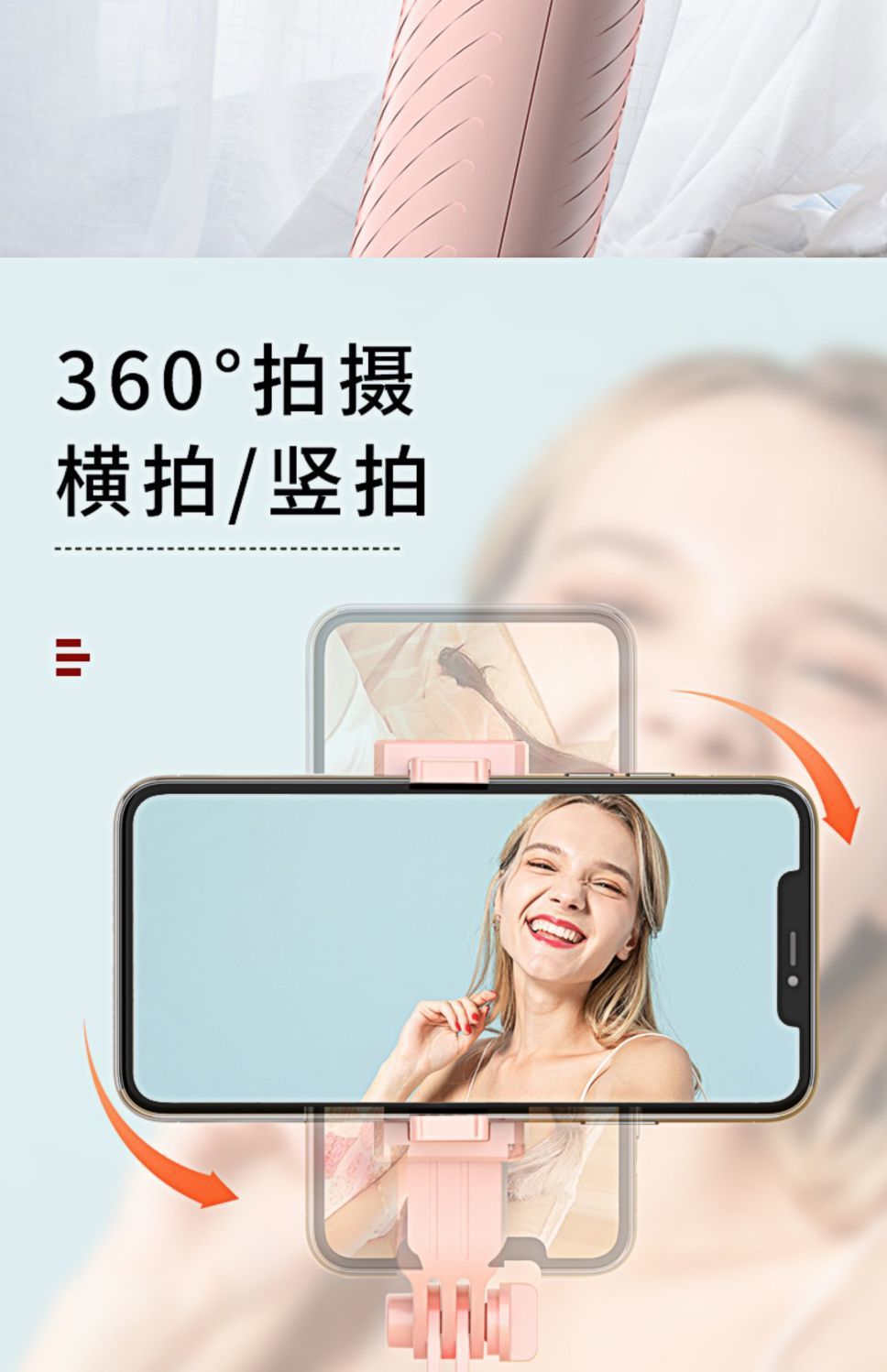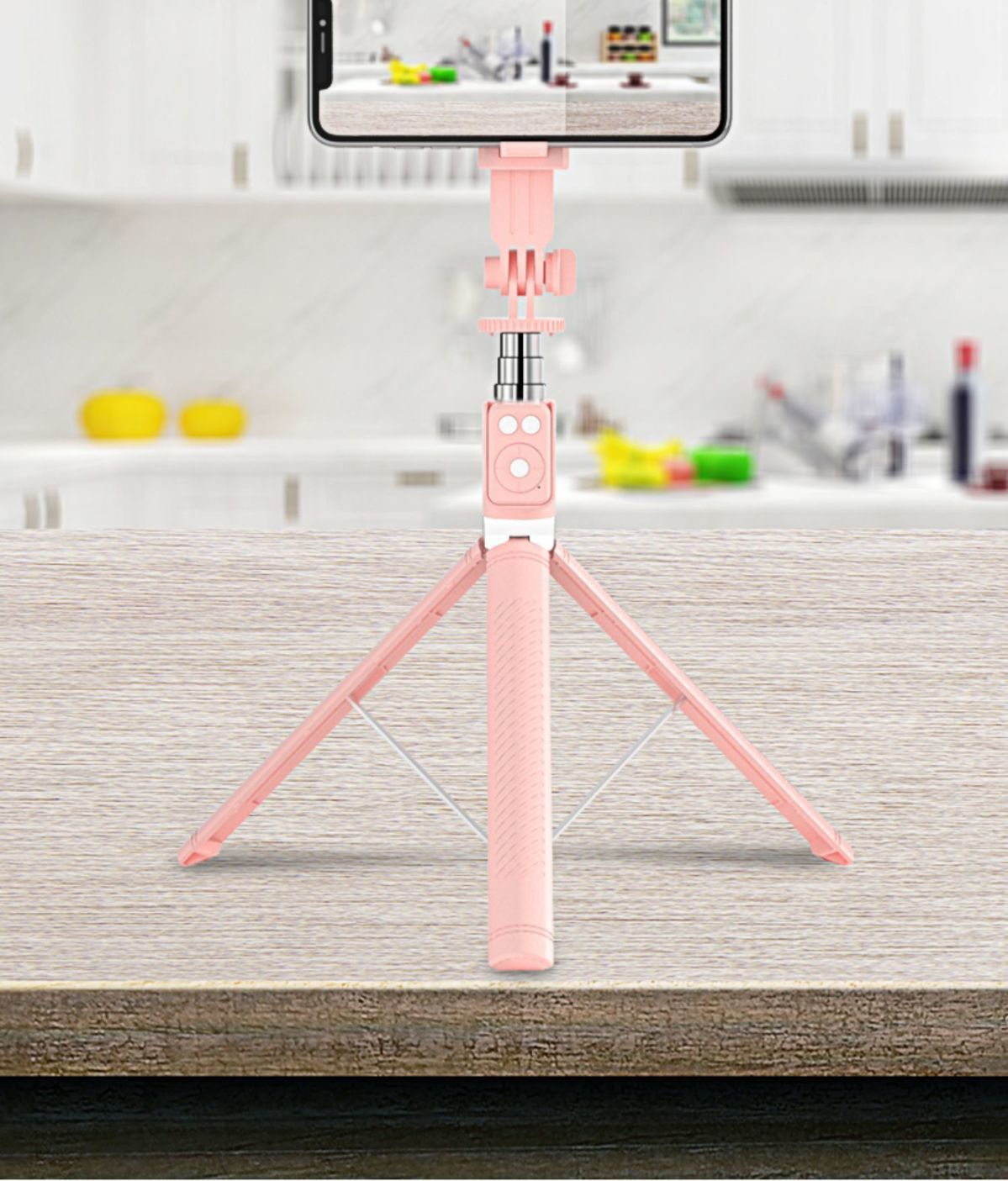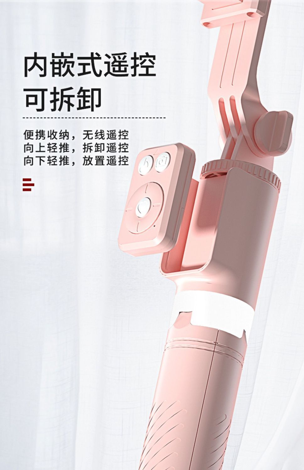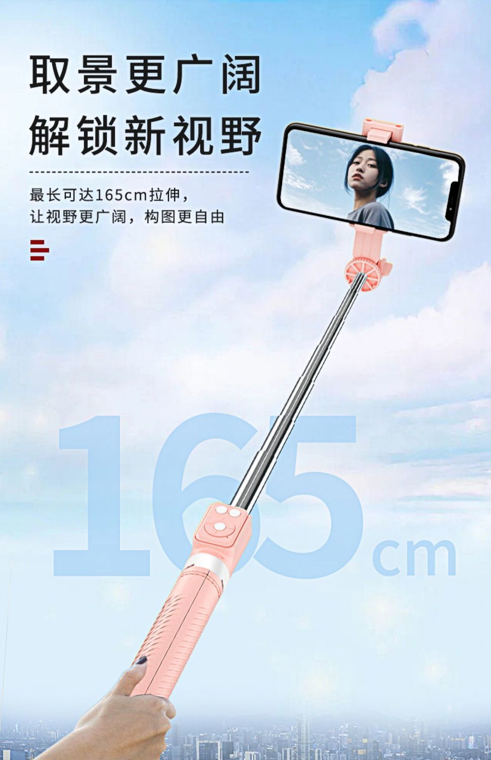 • T12 핑크 라이트리스 모델 [ 1.7m 알루미늄 합금 일체형 셀카봉 + 충전 다기능 블루투스 리모컨]