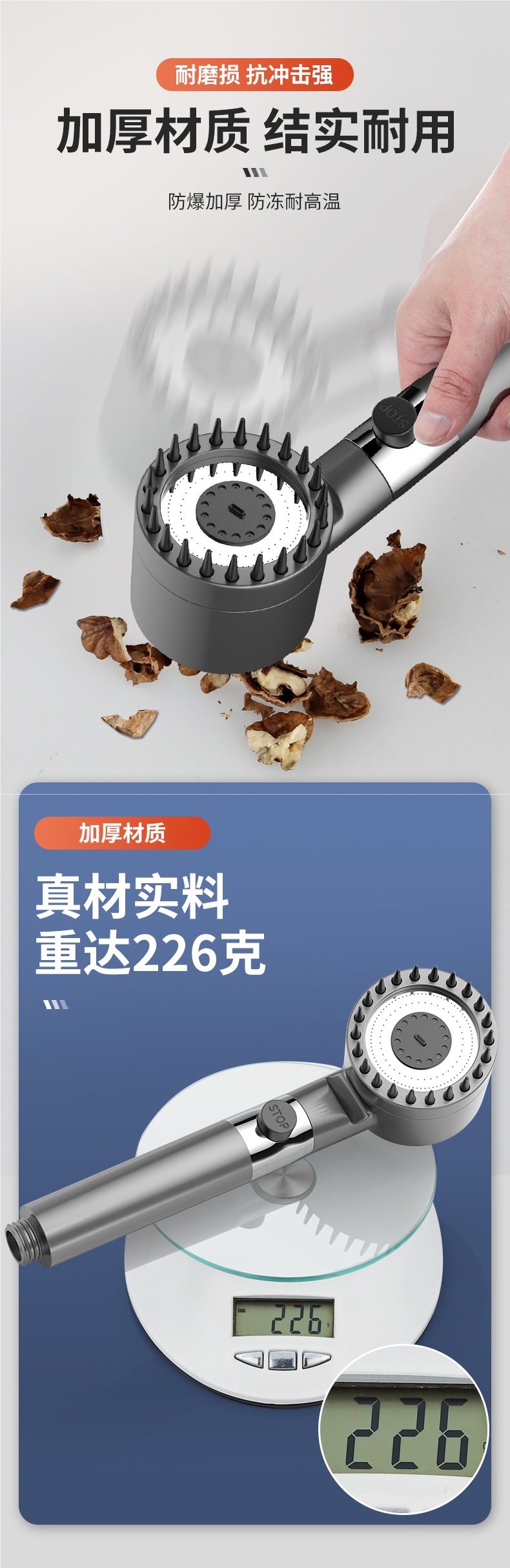• [그레이 세트 3] 마사지 브러시 + 펀치 프리 브래킷 + 필터 요소가 포함된 강력한 부스터 필터 샤워 헤드*2