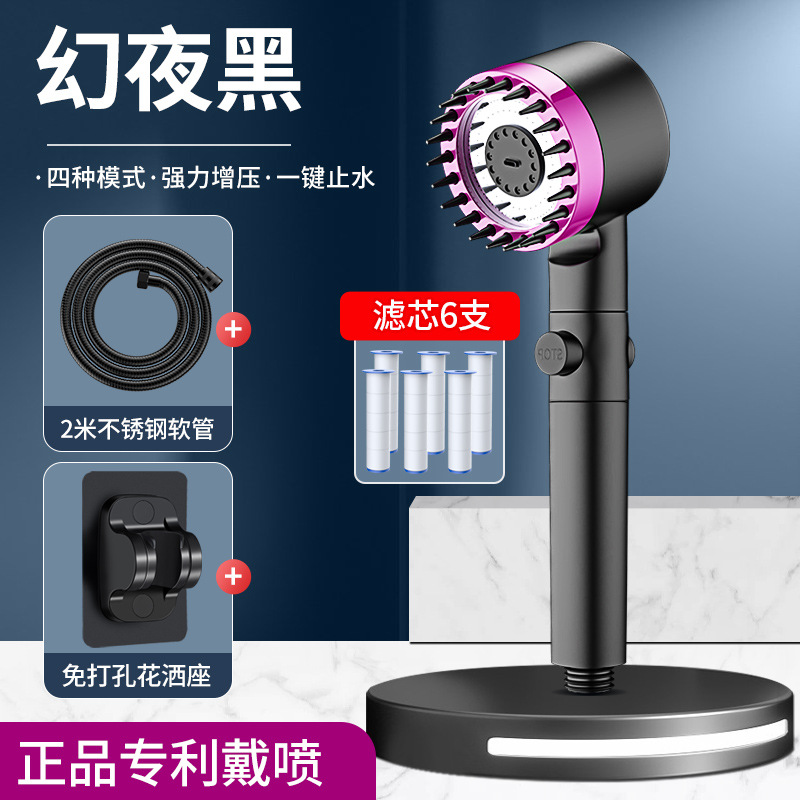 • [매직 나이트 블랙-다이 스프레이] 강력한 가압 필터 샤워 헤드(마사지 브러시 포함)❤필터 요소*10)