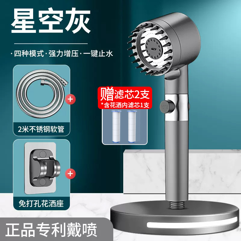 • [그레이 세트 4] 마사지 브러시가 포함된 강력한 부스터 필터 샤워 + 1.5m 방폭 호스 + 펀치 프리 브래킷 + 필터 요소 *2
