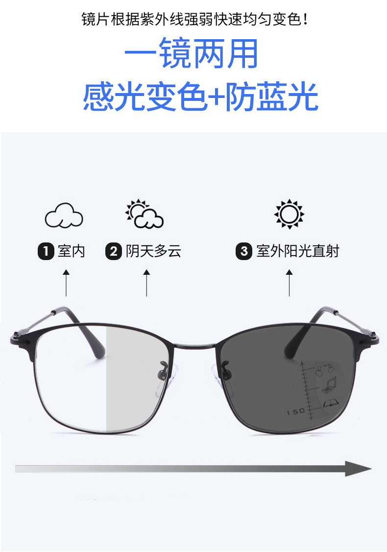 멀티 초점 색상 변경 독서 안경 진보적 인 멀티 초점 이중 목적 독서 안경 중년 및 오래된 안티 블루 라이트 컬러 변경 안경스토어 가기