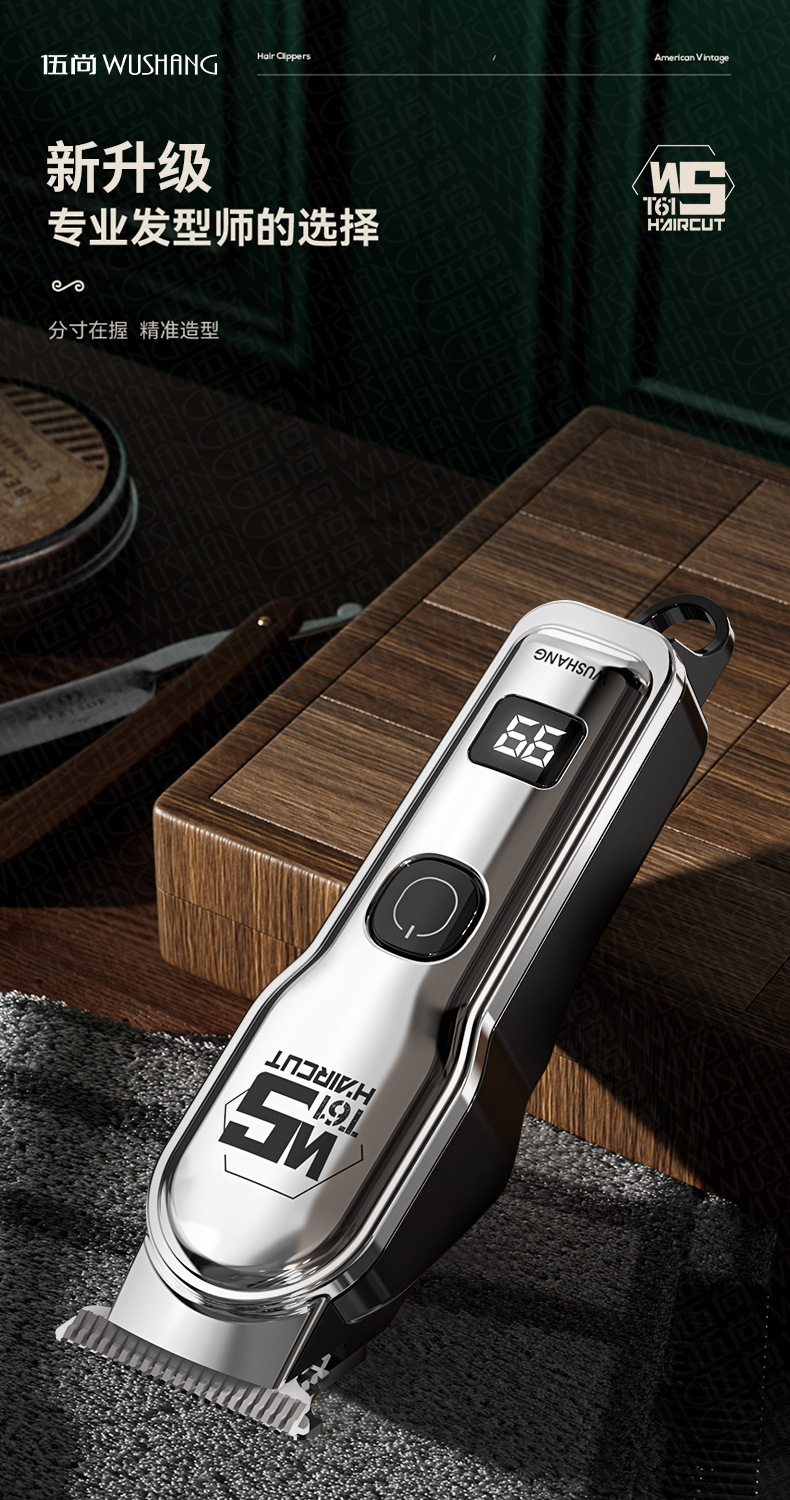 • WS-T61 실버 이발기 + 빗 + 천 + 스펀지 + 더블 가위