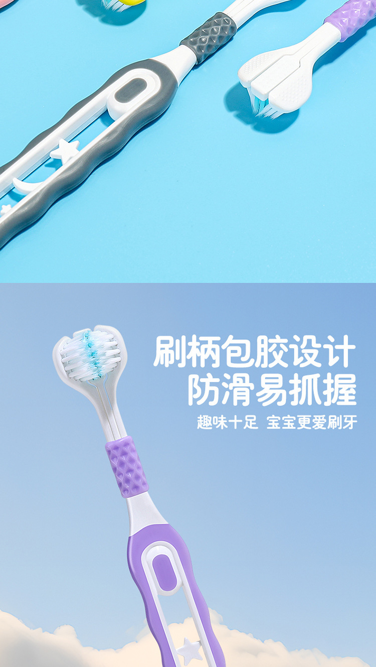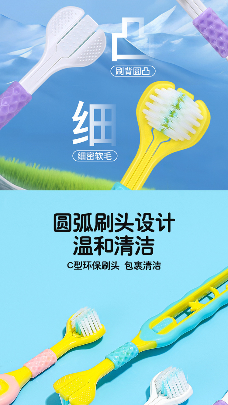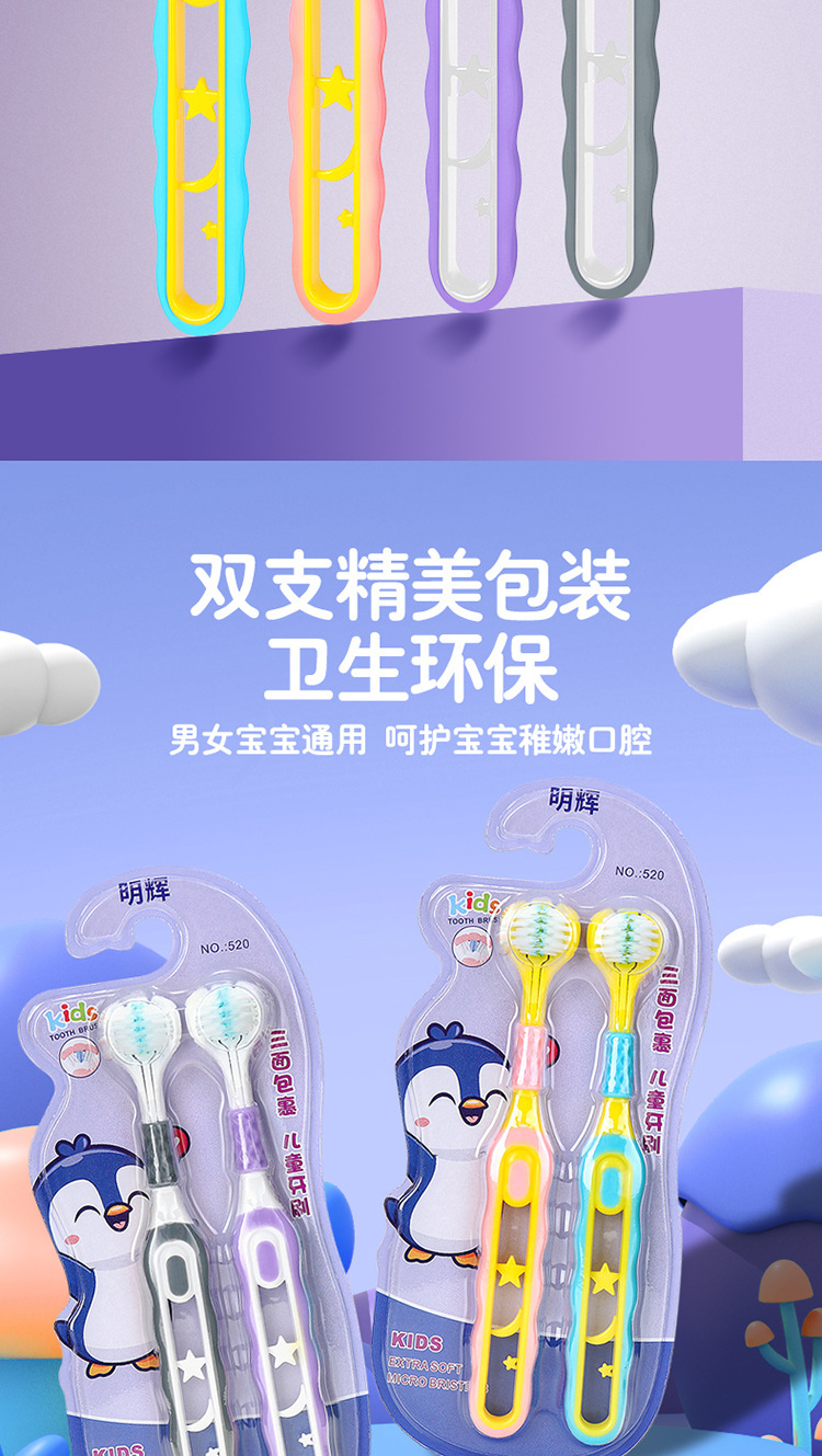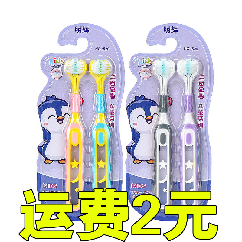 [2 팩] 어린이 부드러운 강모 칫솔 3 면 3 ~ 6-12 세 U 자형 3d 종합 패키지 청소 도매