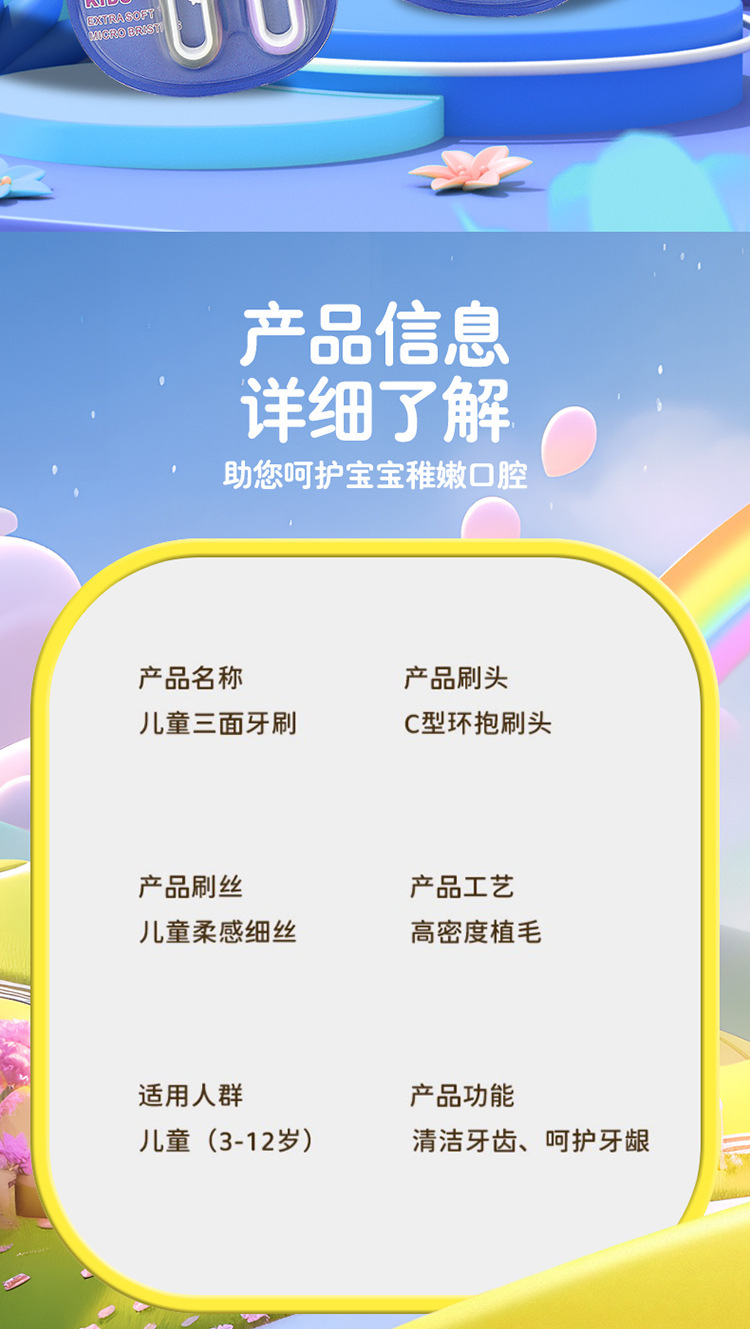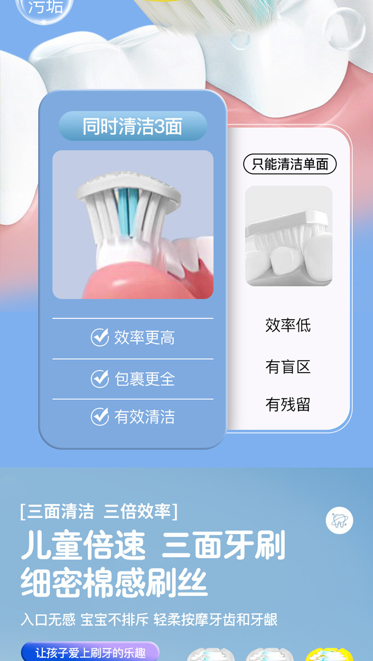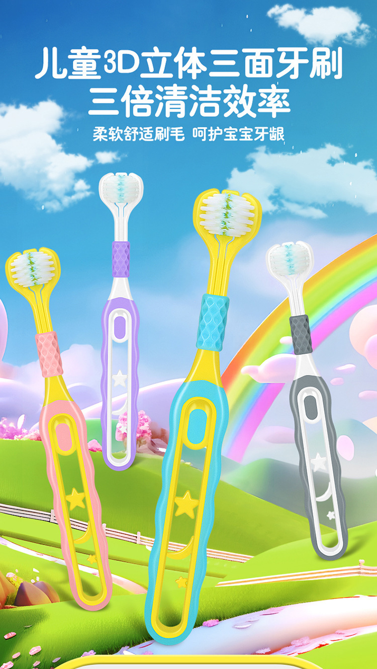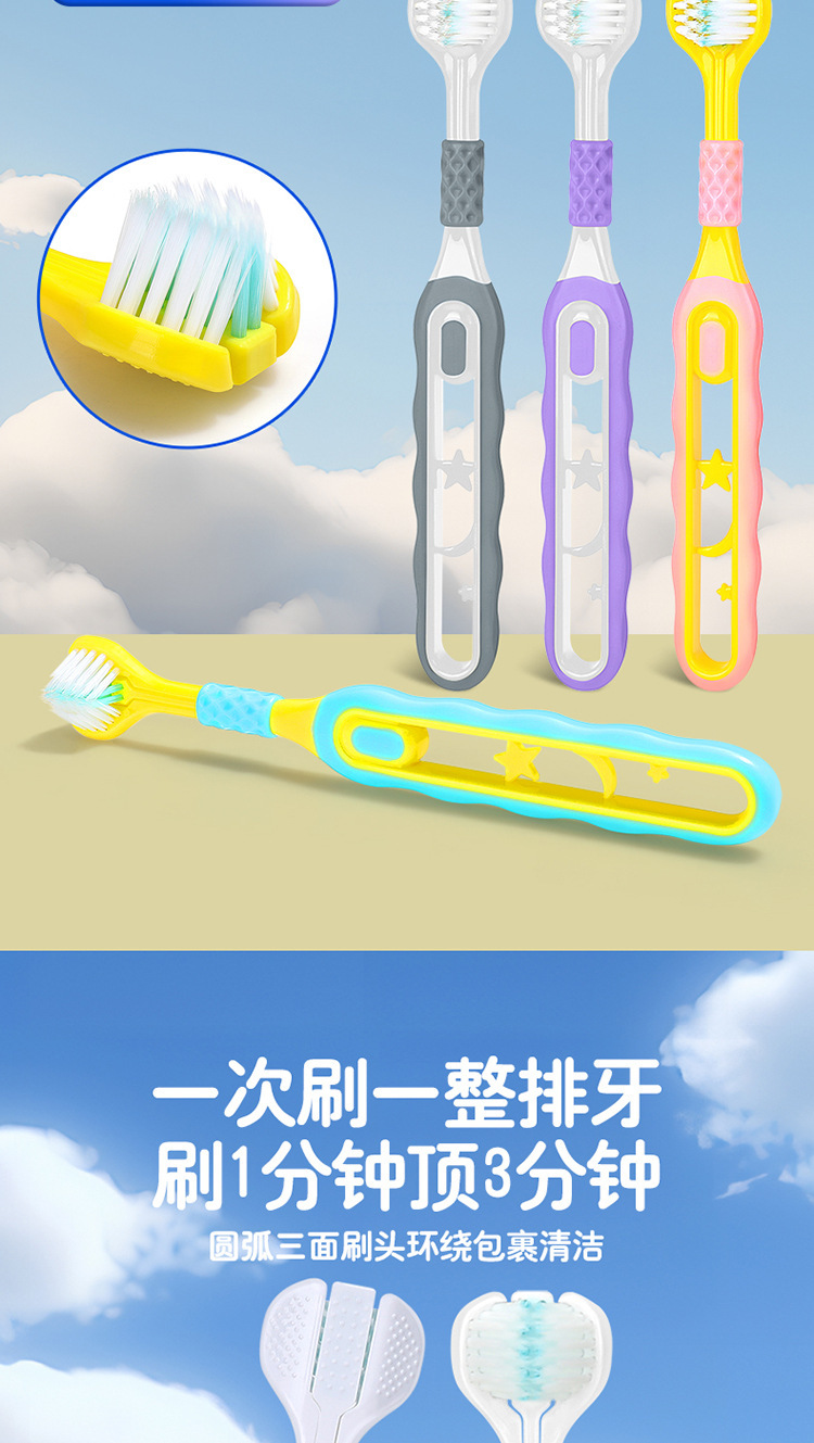 [2 팩] 어린이 부드러운 강모 칫솔 3 면 3 ~ 6-12 세 U 자형 3d 종합 패키지 청소 도매