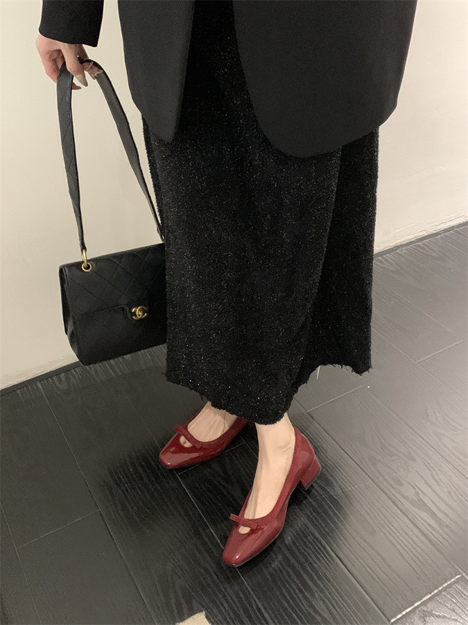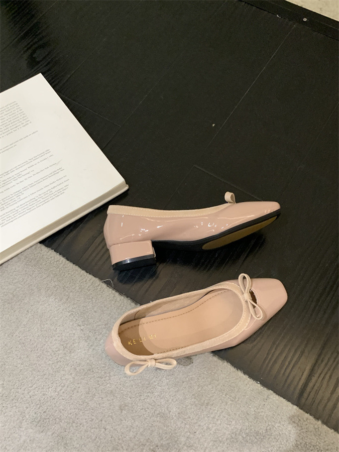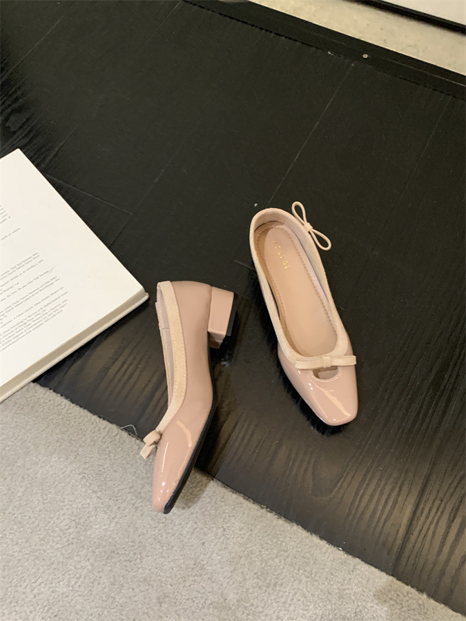청키 힐 프랑스 싱글 신발 여성 신발 2025 봄과 가을 새로운 레드 웨딩 슈즈 특허 가죽 활 슬립 온 국자 신발스토어 가기