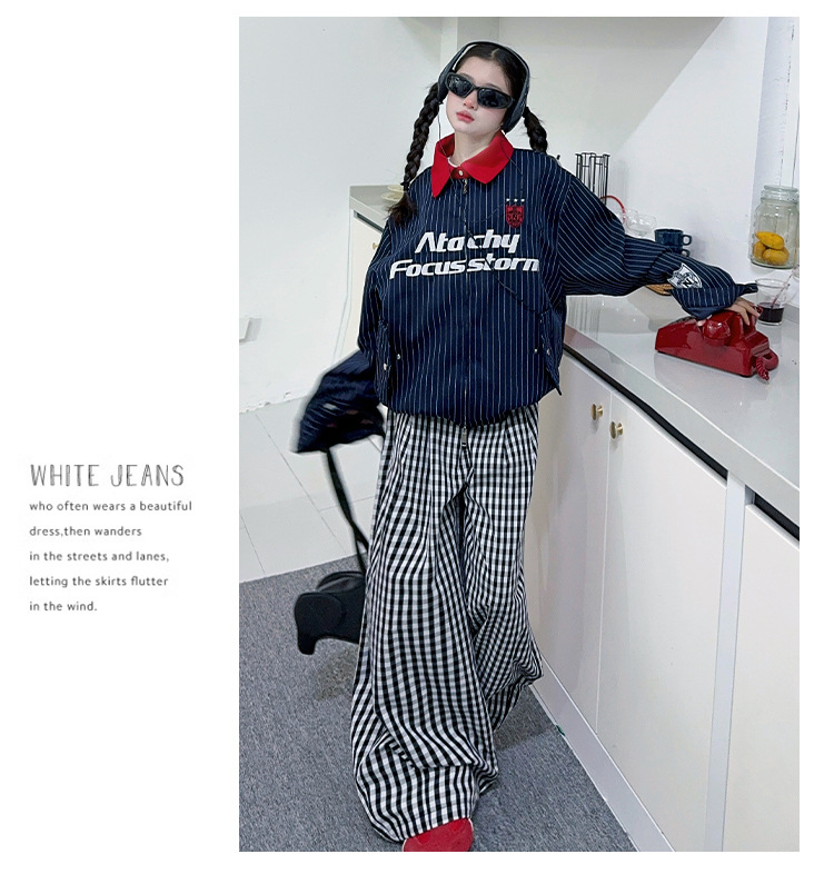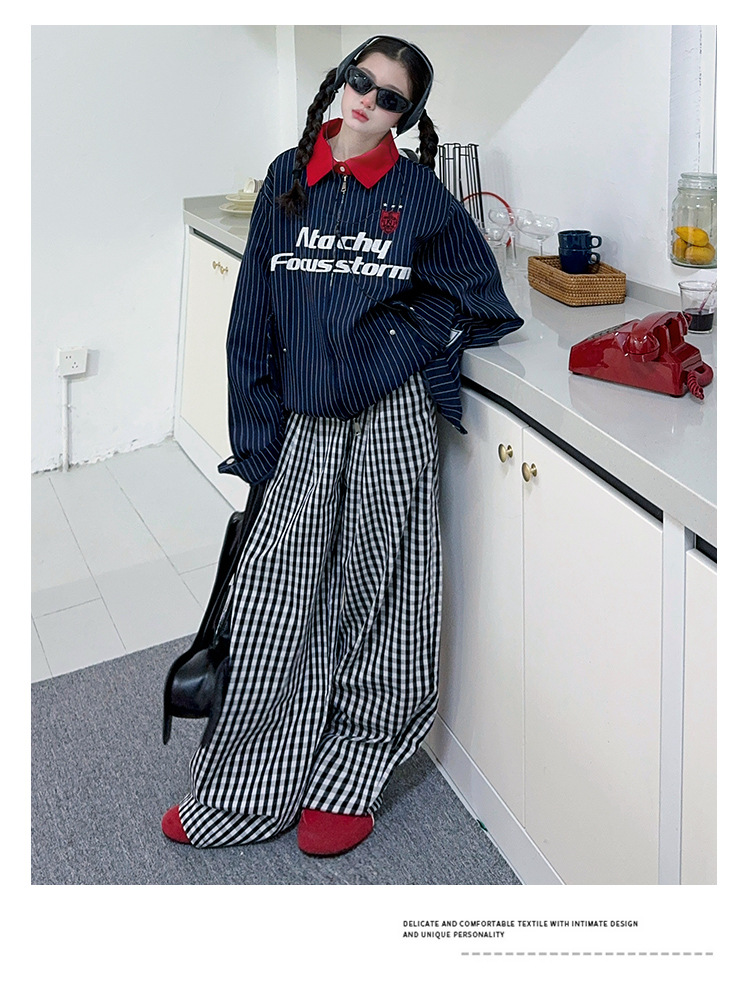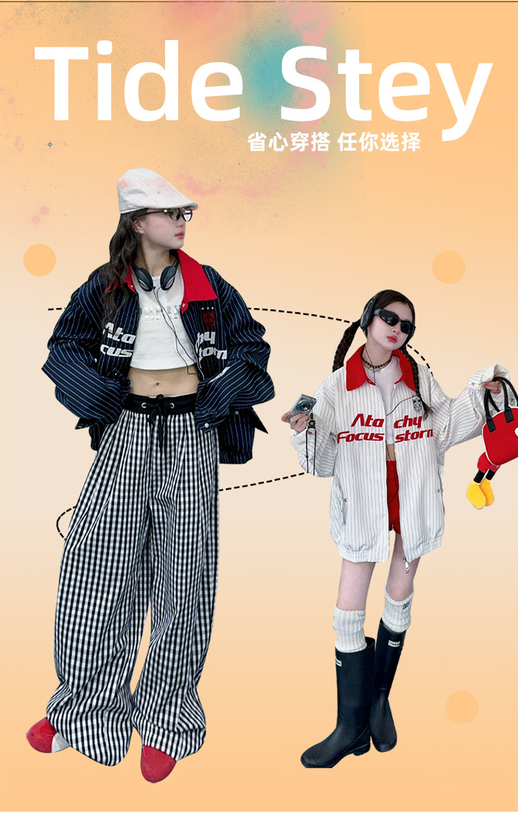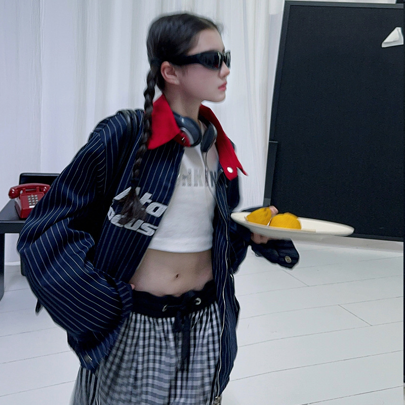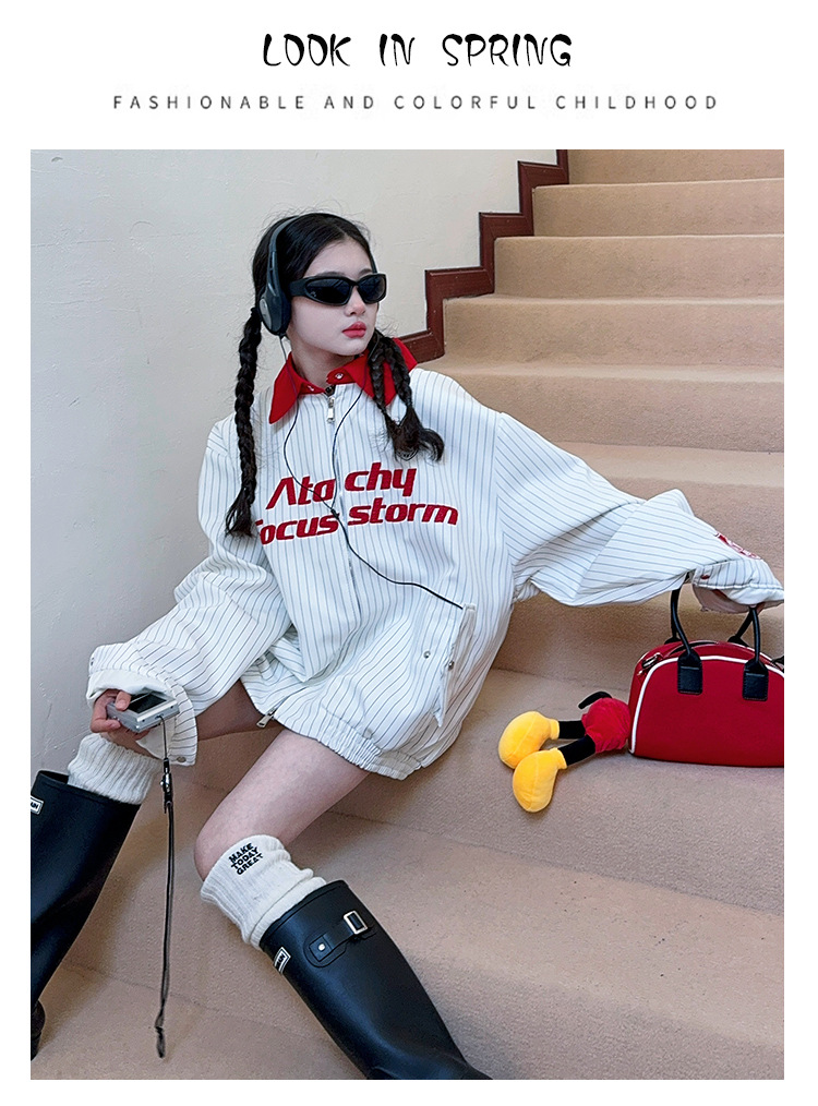 소녀 2025 봄과 가을 미국 스타일 레트로 컬러 대조 긴 소매 재킷 코트 느슨한 캐주얼 탑 가을 랩스토어 가기