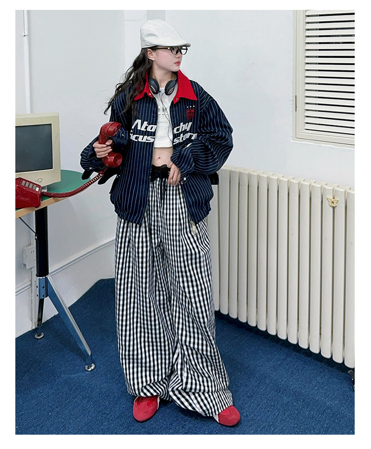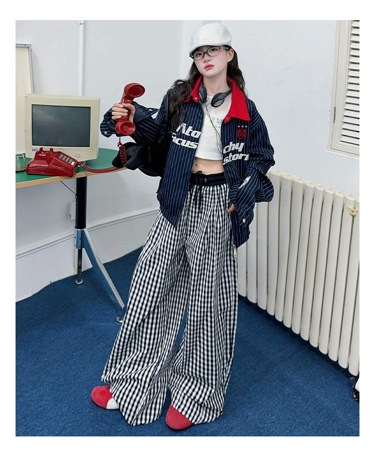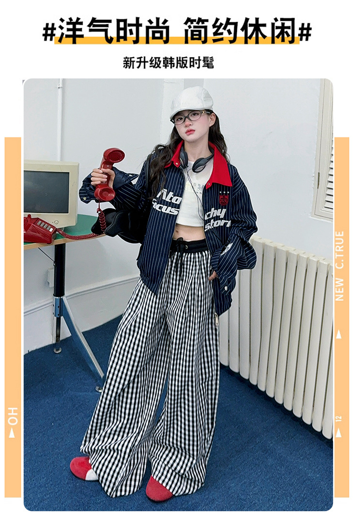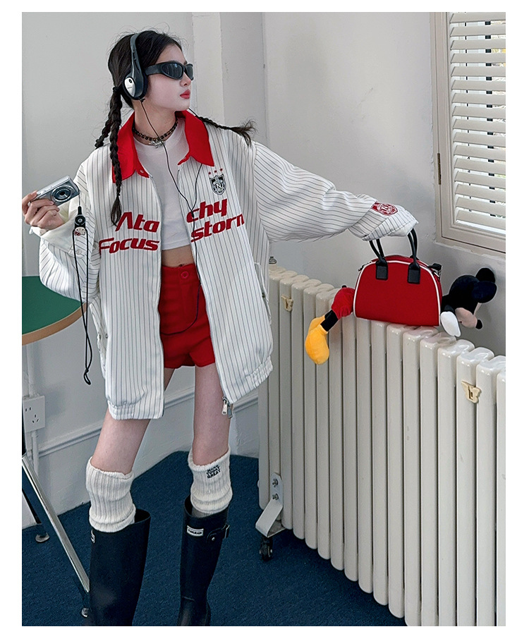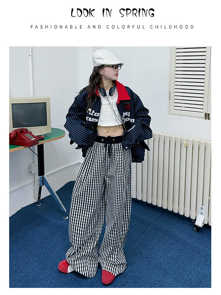 소녀 2025 봄과 가을 미국 스타일 레트로 컬러 대조 긴 소매 재킷 코트 느슨한 캐주얼 탑 가을 랩스토어 가기