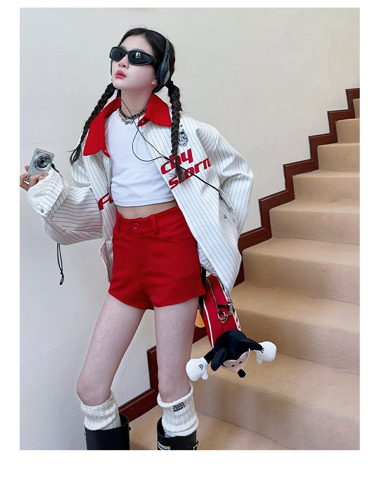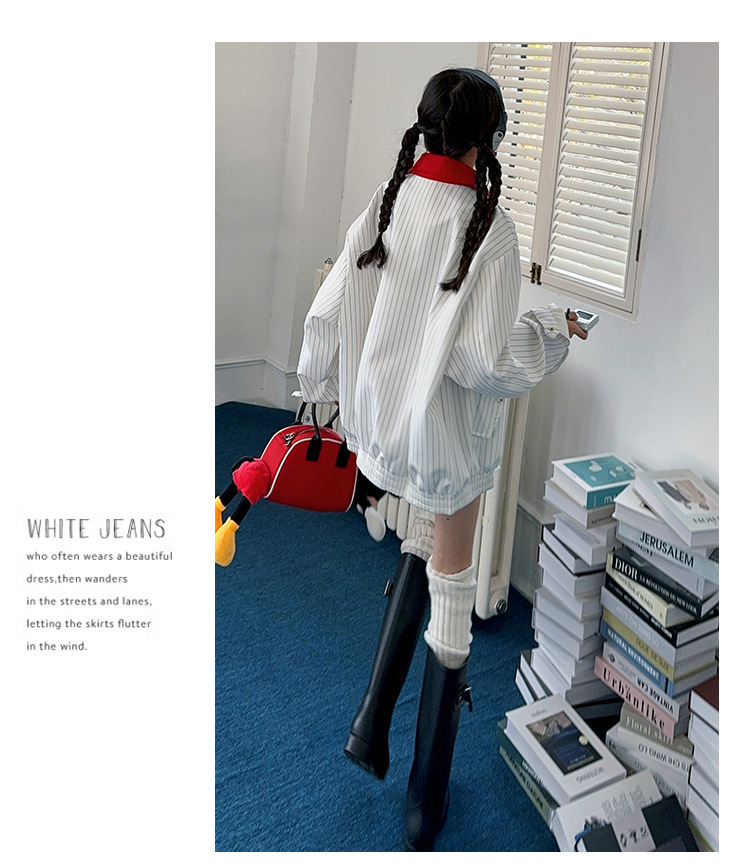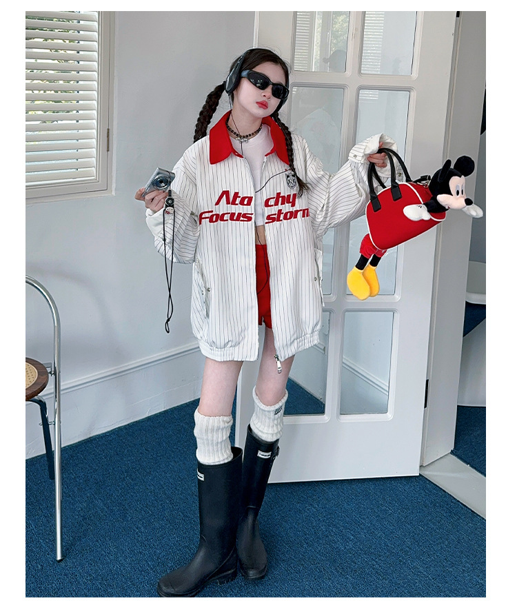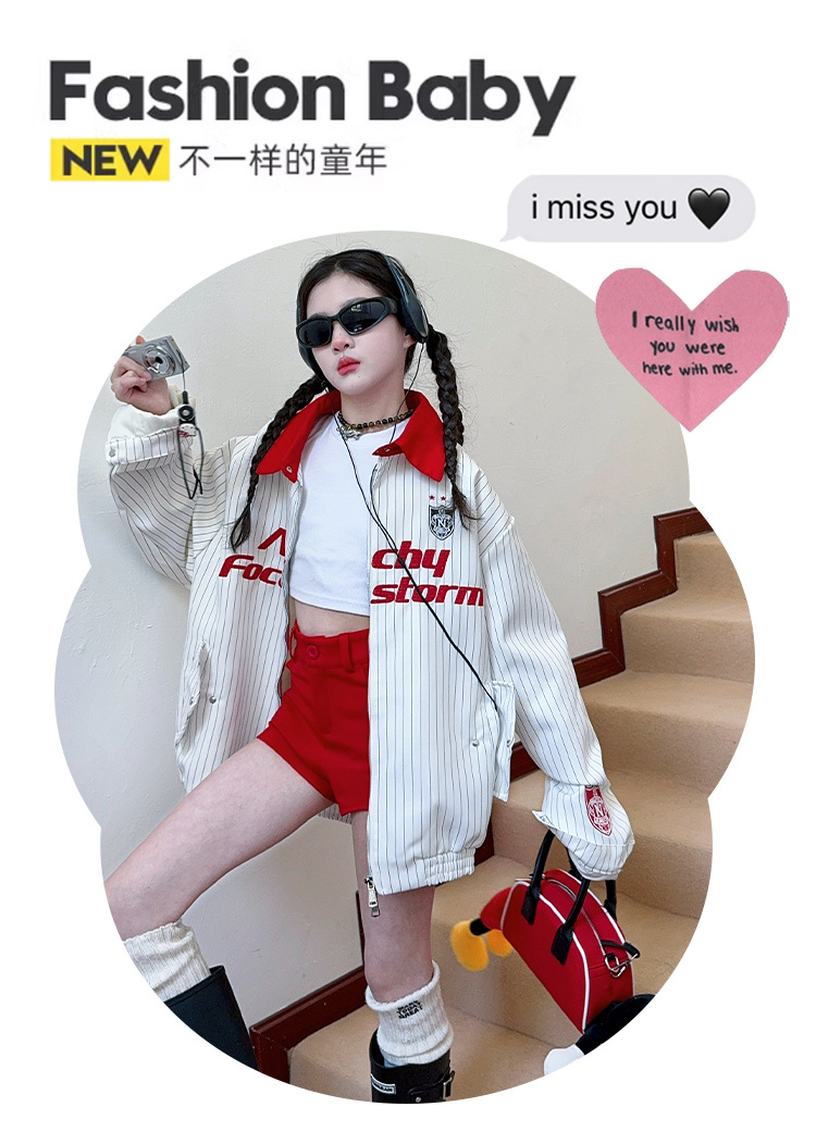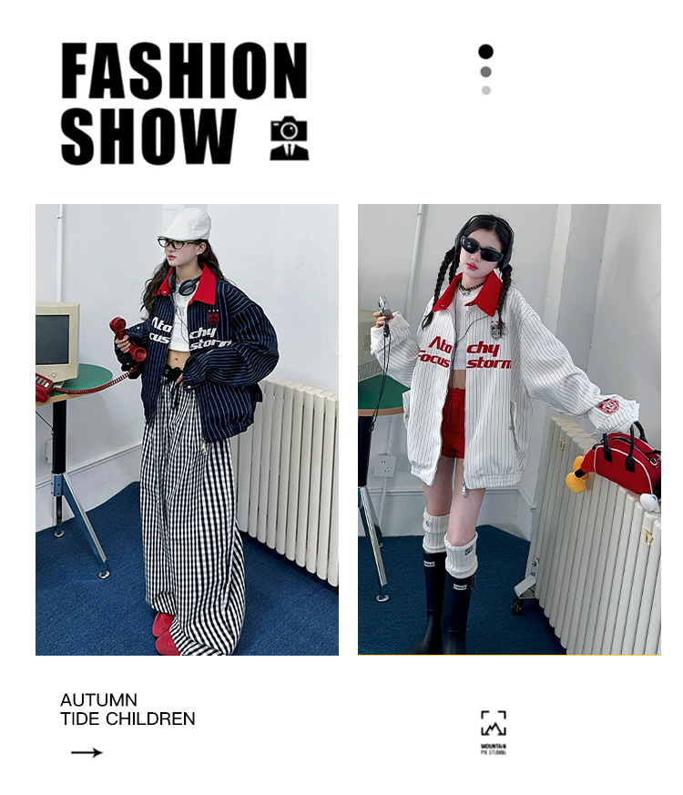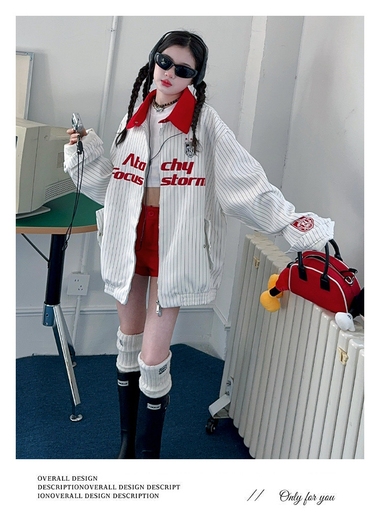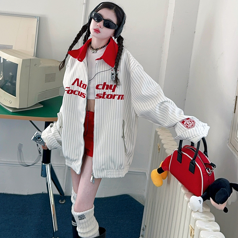 소녀 2025 봄과 가을 미국 스타일 레트로 컬러 대조 긴 소매 재킷 코트 느슨한 캐주얼 탑 가을 랩