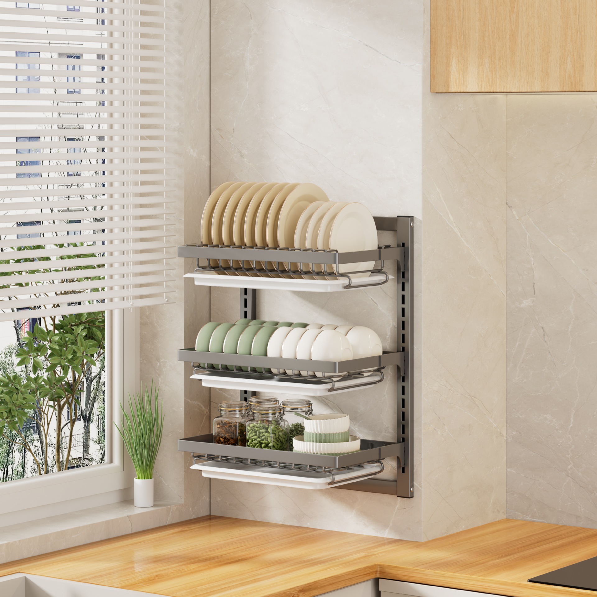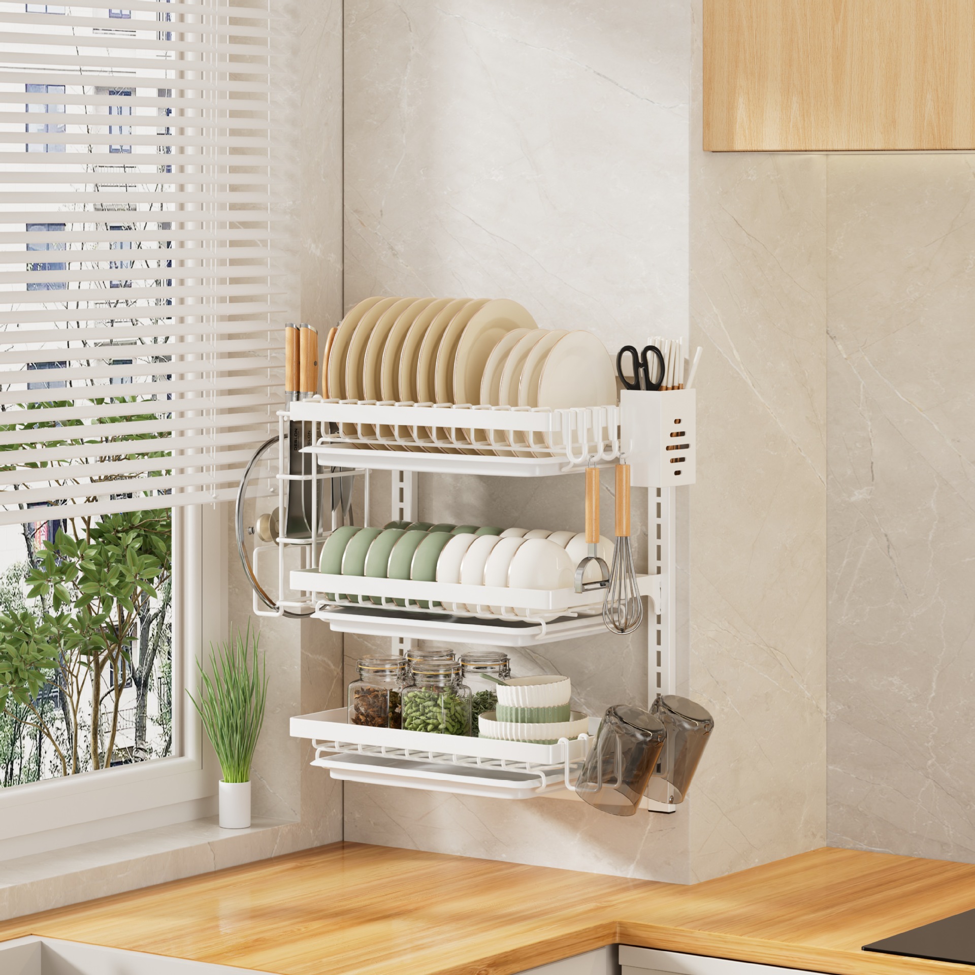 펀치없는 주방 보관 랙 다층 접시 랙 스토리지 랙 다기능 그릇 젓가락 접시 벽걸이 접시 랙