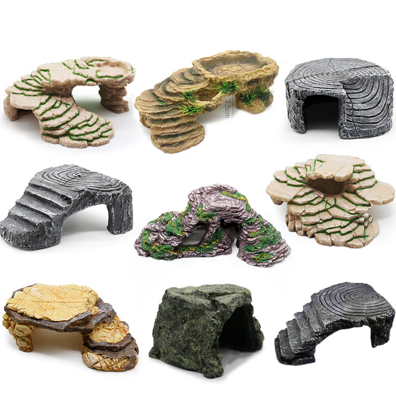 거북이 등반 테이블 바구니 테이블 거북이 회피 집 거북이 탱크 풍경 장식 거북이 동굴 회피 동굴 어항 수지 거북이 플랫폼