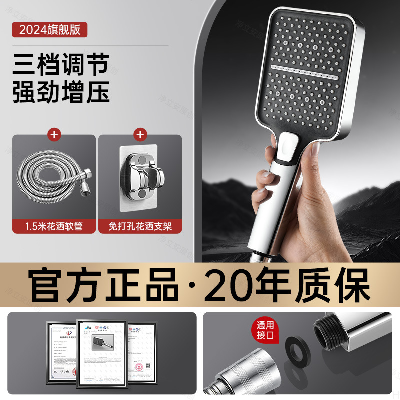 • 브릴리언트 실버 3단 슈퍼차저 샤워 + 1.5m 호스 + 브래킷