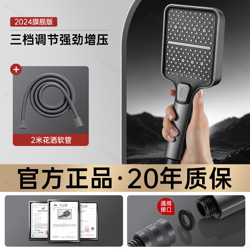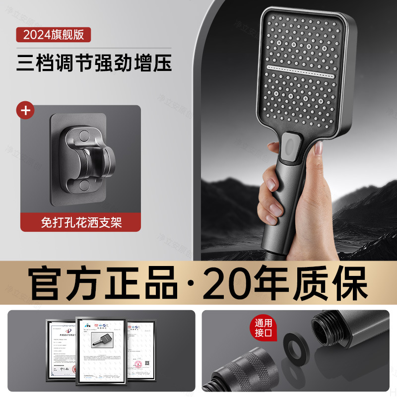 • 티타늄 그레이 3단 슈퍼차저 샤워 + 1.5m 호스 + 브래킷