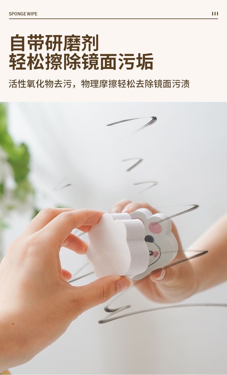 만화 팬더 유리 닦아 거울 오염 제거 청소 매직 닦아 가정용 욕실 수도꼭지 거울 Descaling 스폰지 와이프