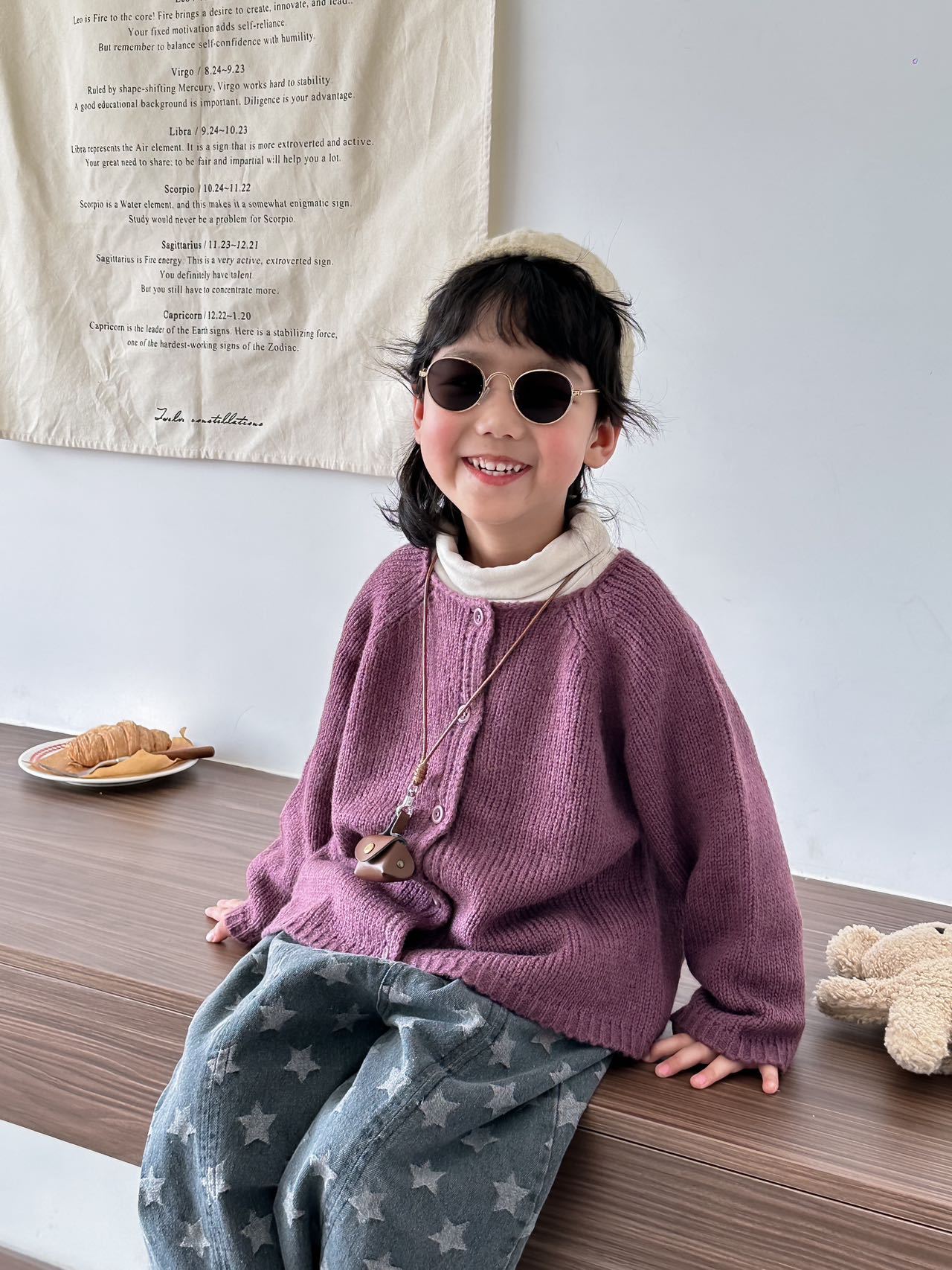 게으른 단색 모헤어 ~ 한국 단색 카디건 남녀 보어 어린이 스웨터 일본 코트 니트 카디건