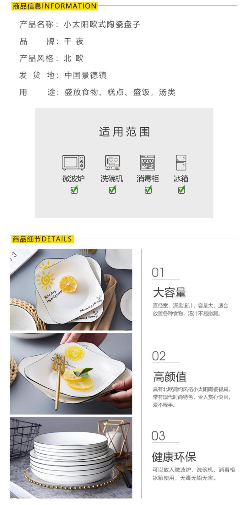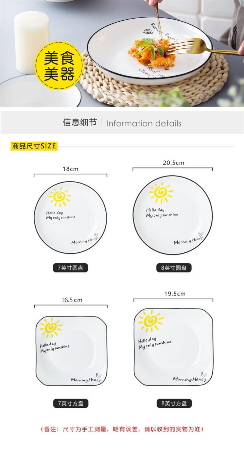 리틀 썬 노르딕 웨스턴 푸드 플레이트 접시 창조적 인 세라믹 식기 스퀘어 플레이트 스테이크 디저트 플레이트 가정용 플레이트 조식 플레이트