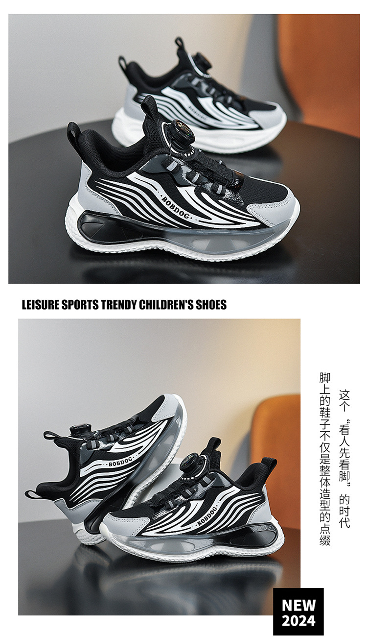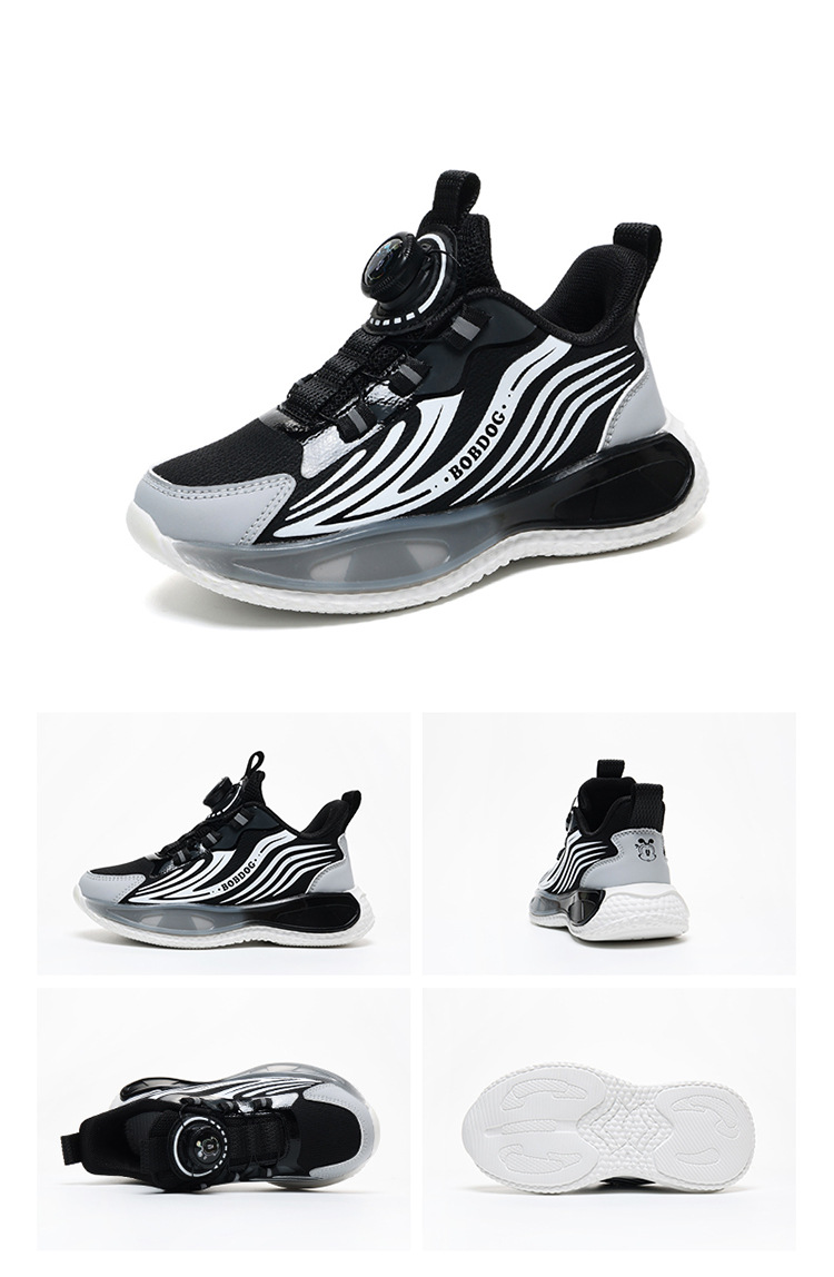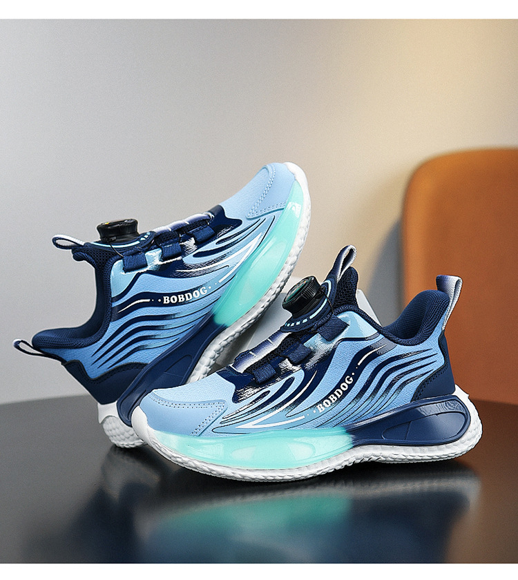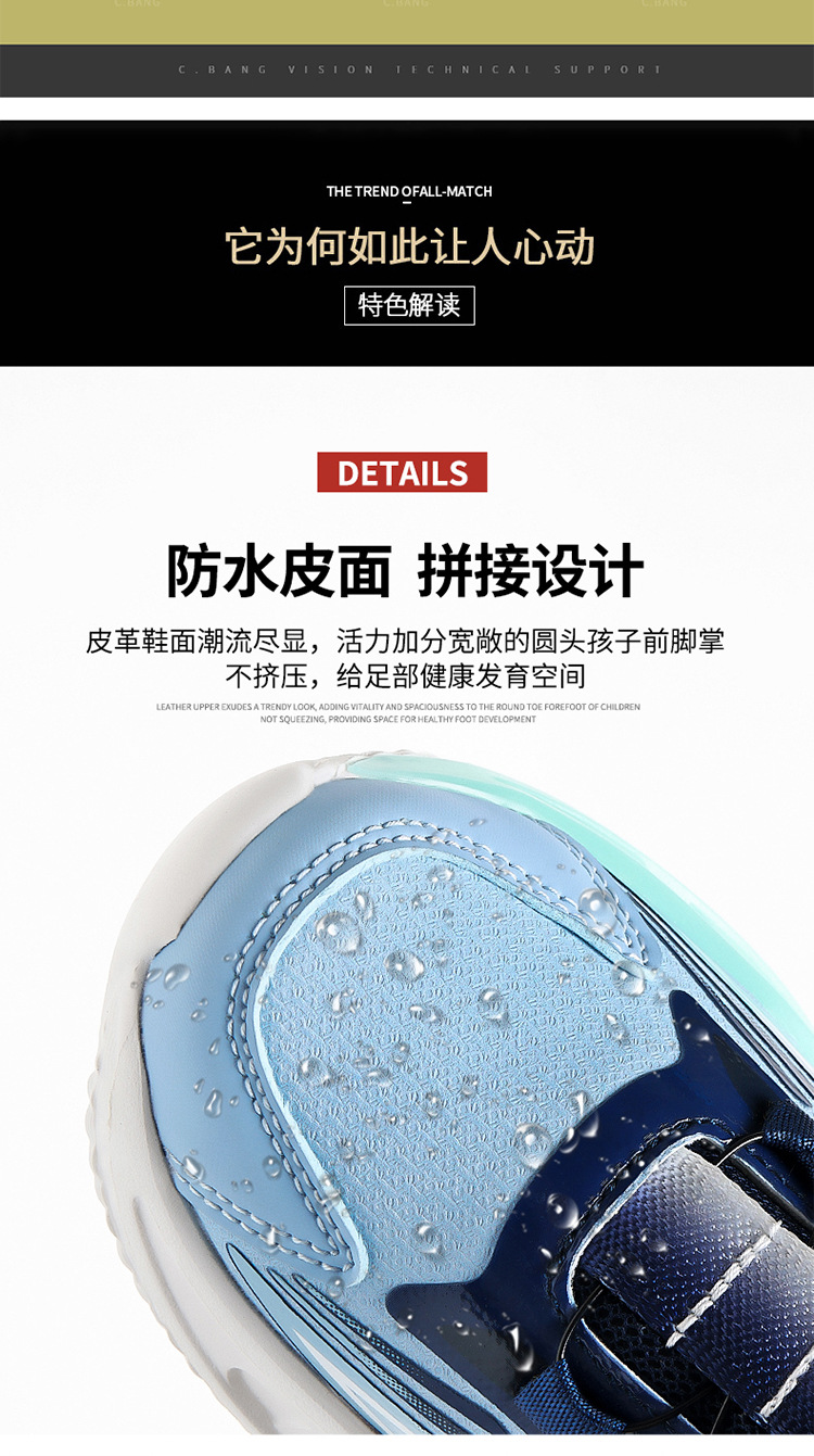 바부 콩 소년 신발 2025 봄과 가을 가죽 방수 중 큰 소년 버튼 달리기 신발 어린이 운동화