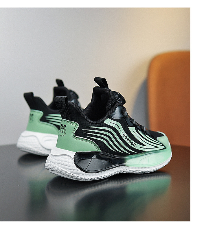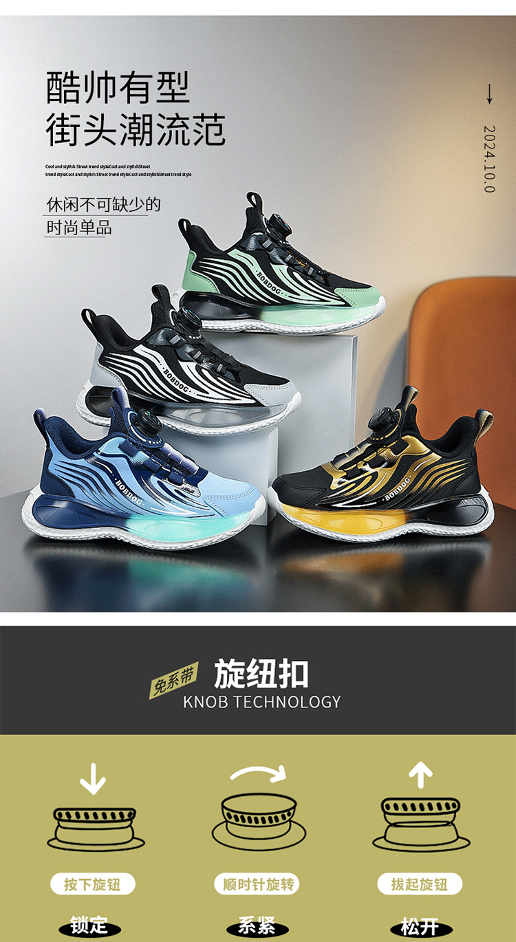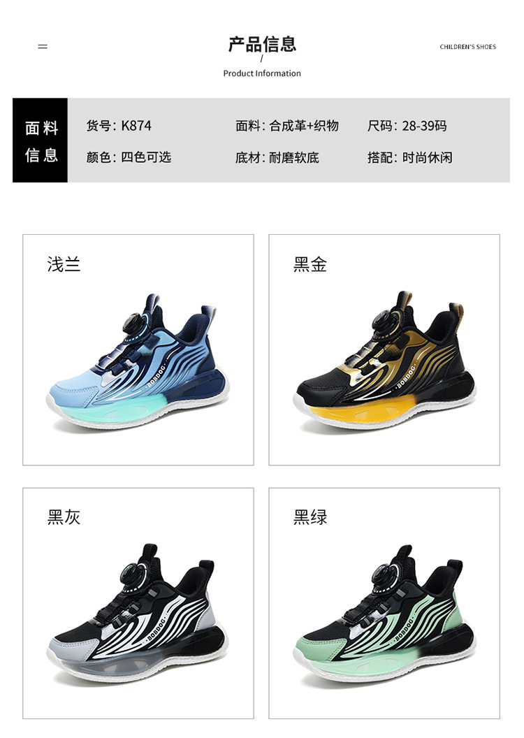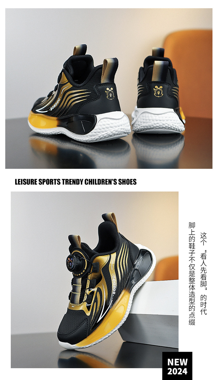 바부 콩 소년 신발 2025 봄과 가을 가죽 방수 중 큰 소년 버튼 달리기 신발 어린이 운동화