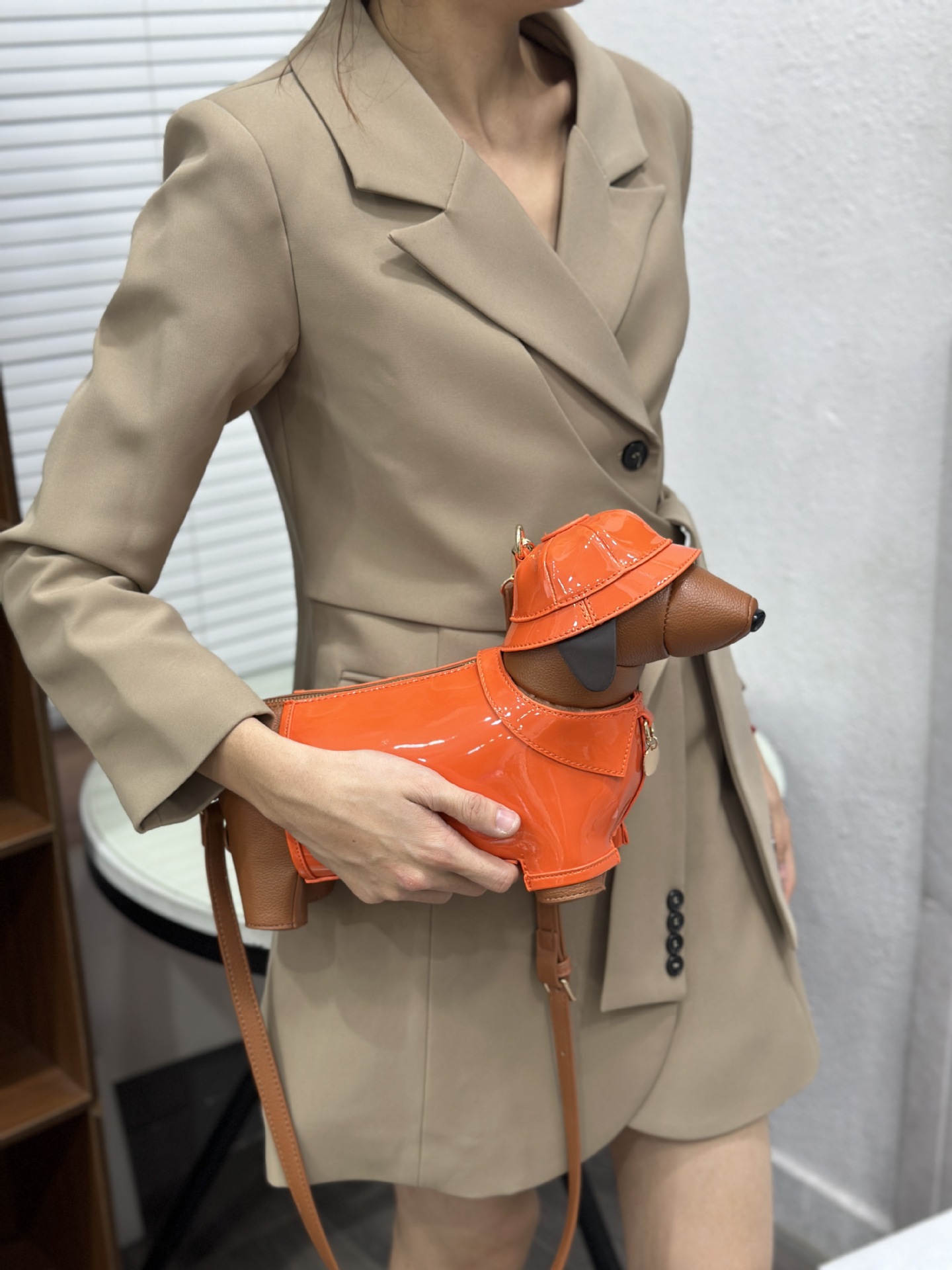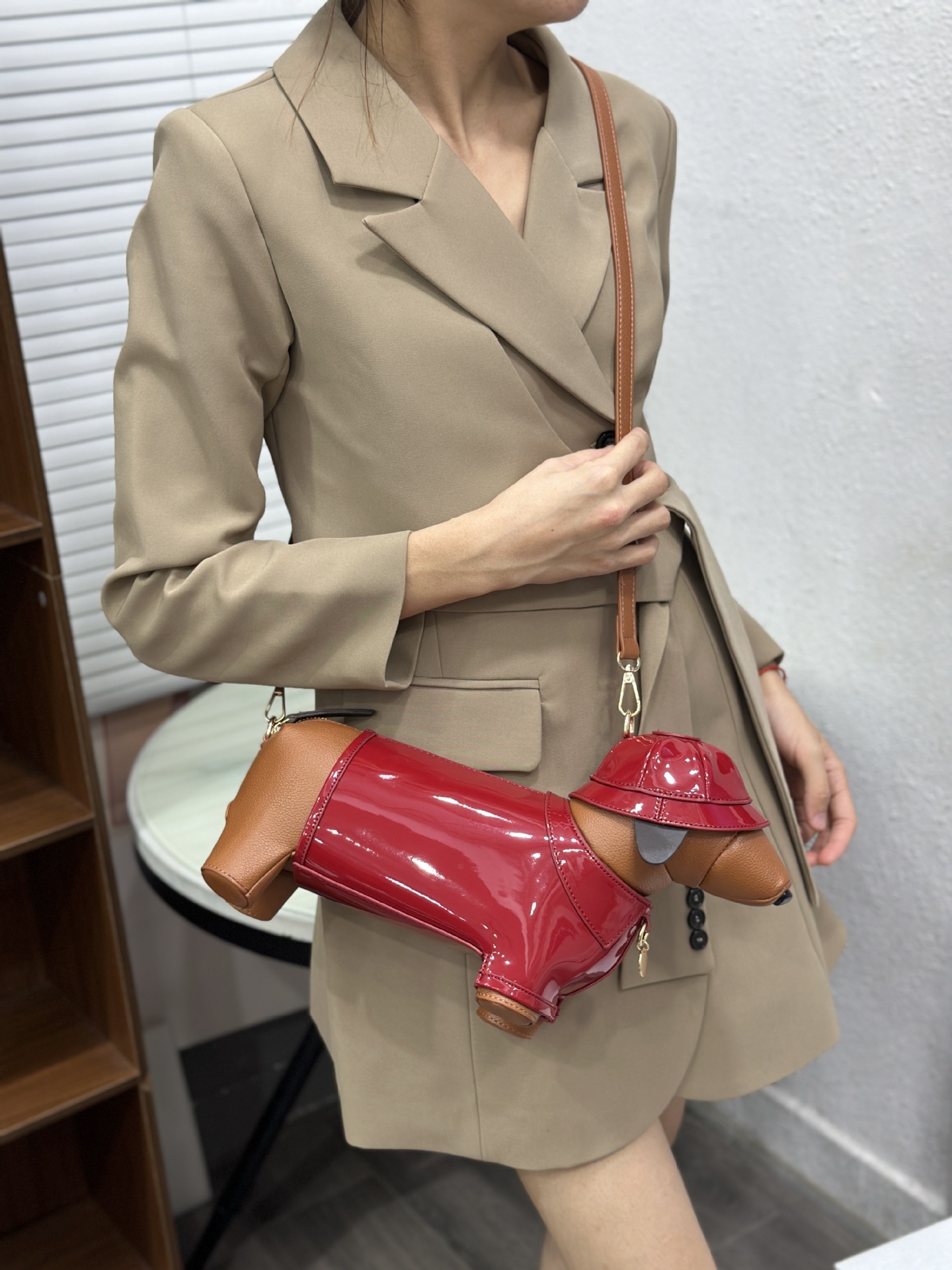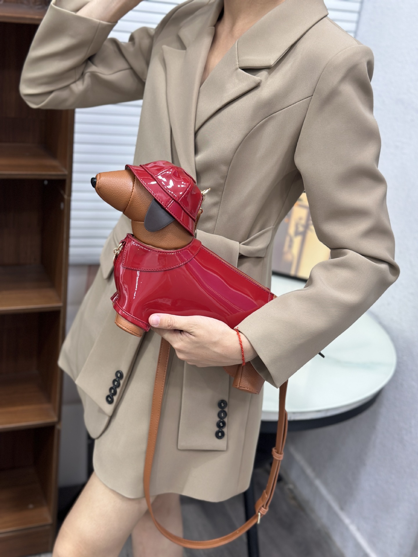 귀여운 다크 브라운 개 가방 여성의 2025 새로운 원래 성격 인형 동물 가방 크로스 바디 가방 어깨 가방 작은 배낭