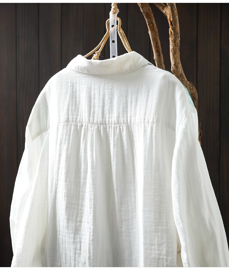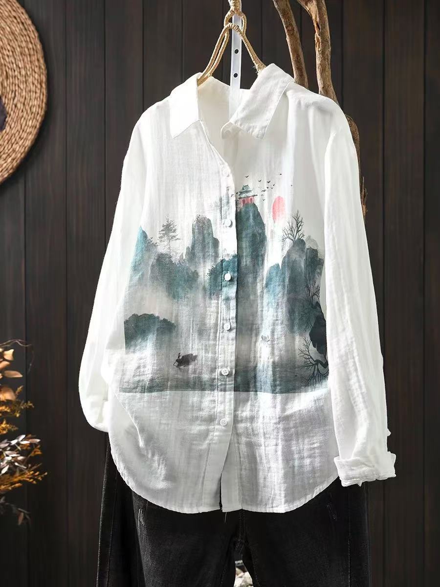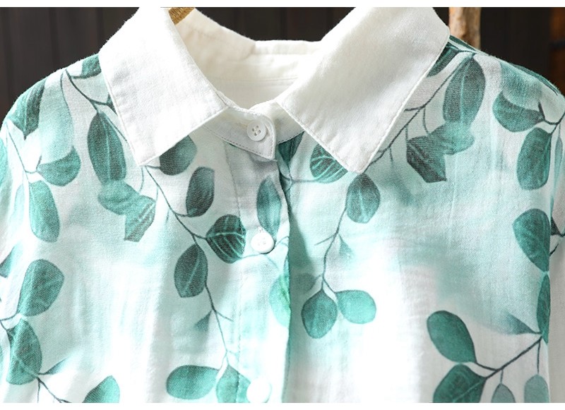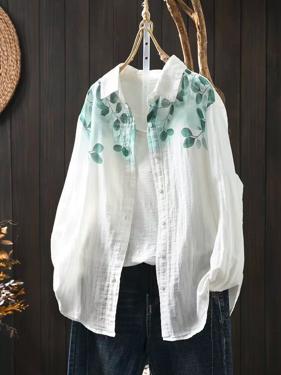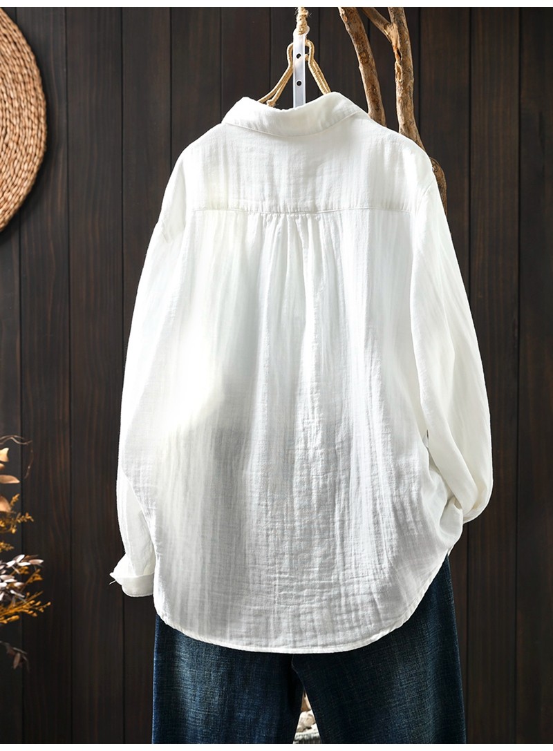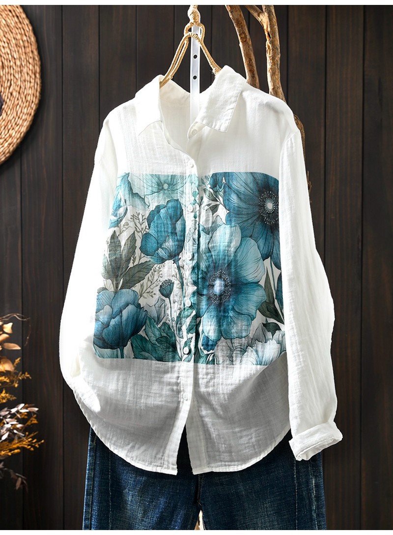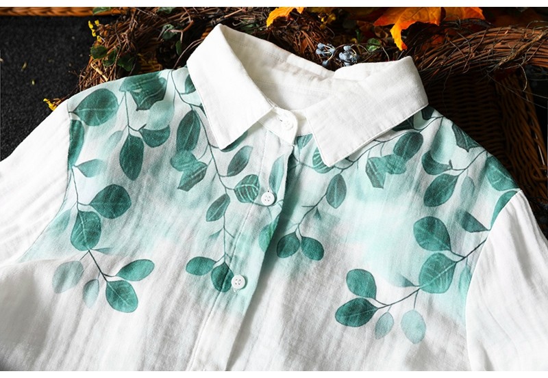 봄 새로운 도착 인쇄 더블 레이어 면 원사 긴 소매 셔츠 여성의 느슨한 슬리밍 예술적 캐주얼 베이스 탑 6666