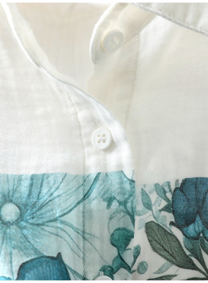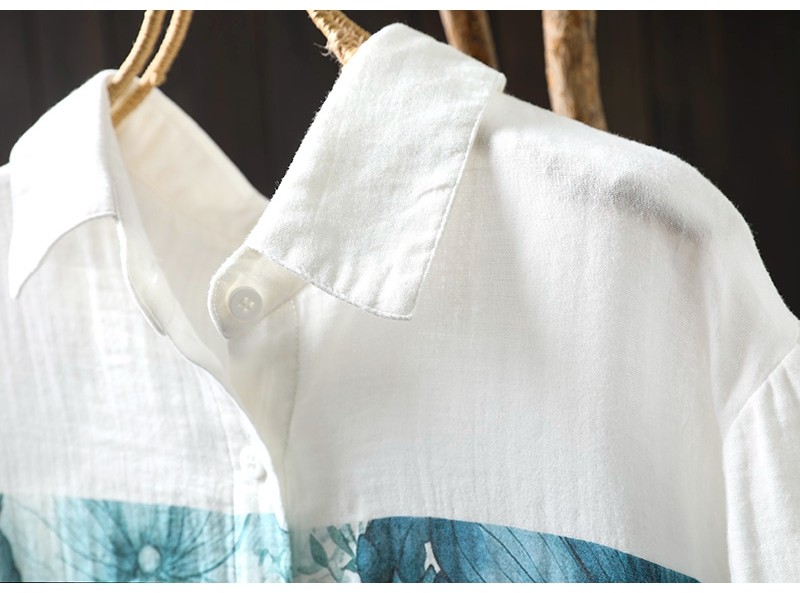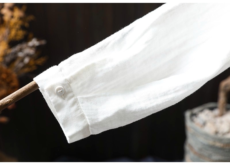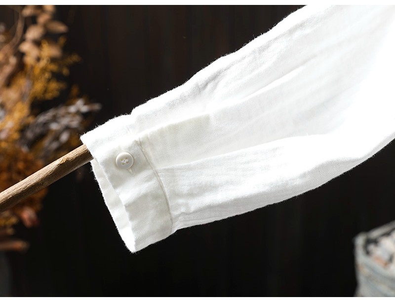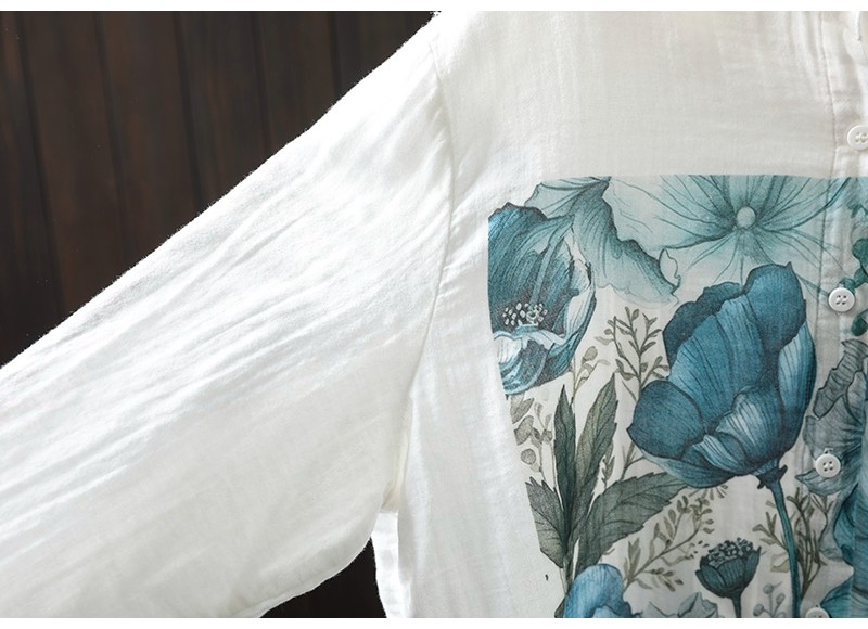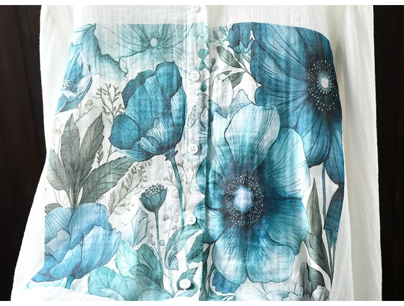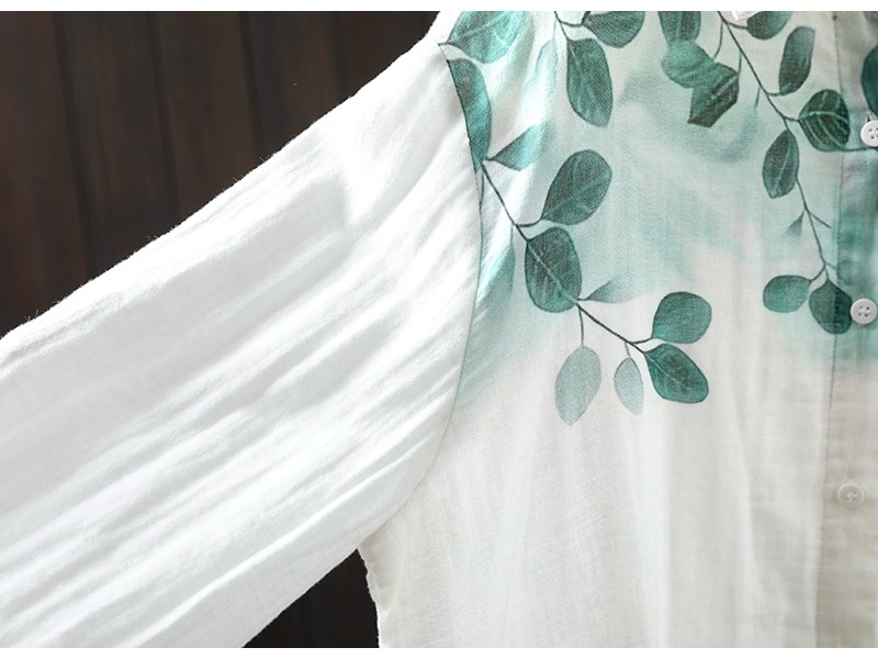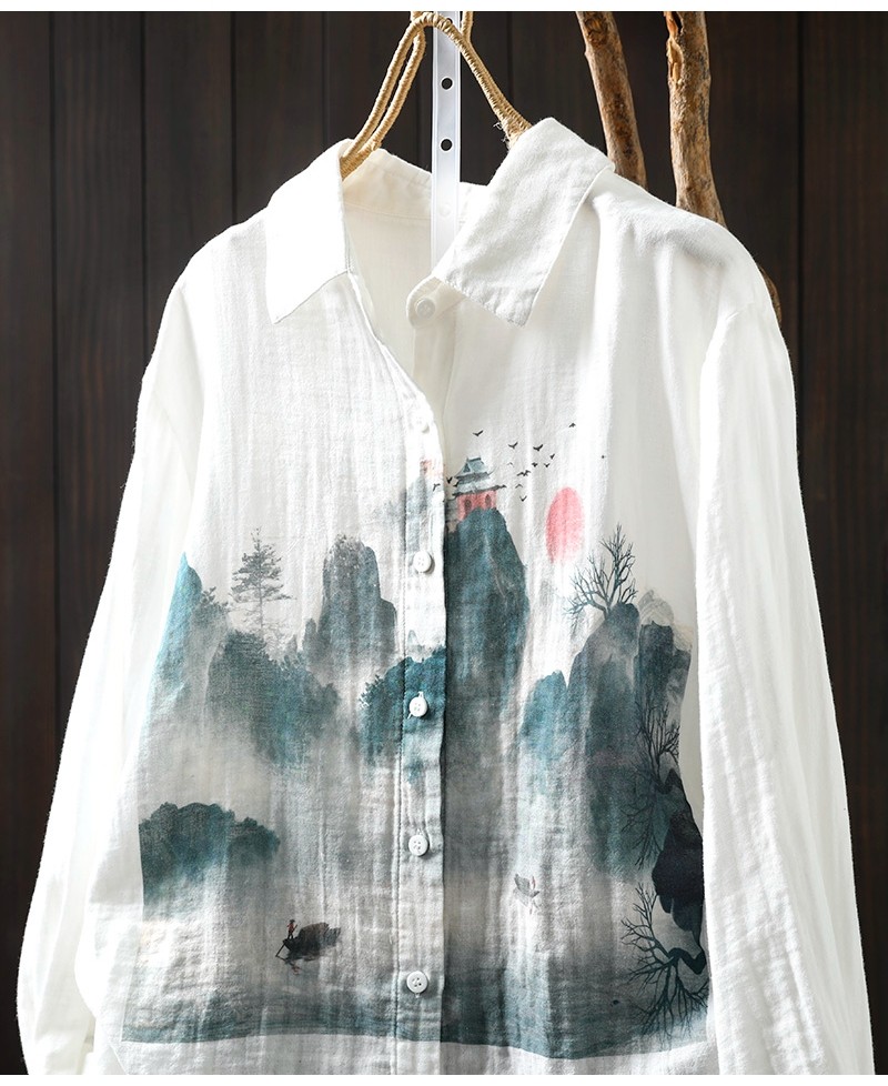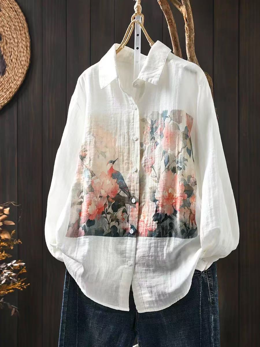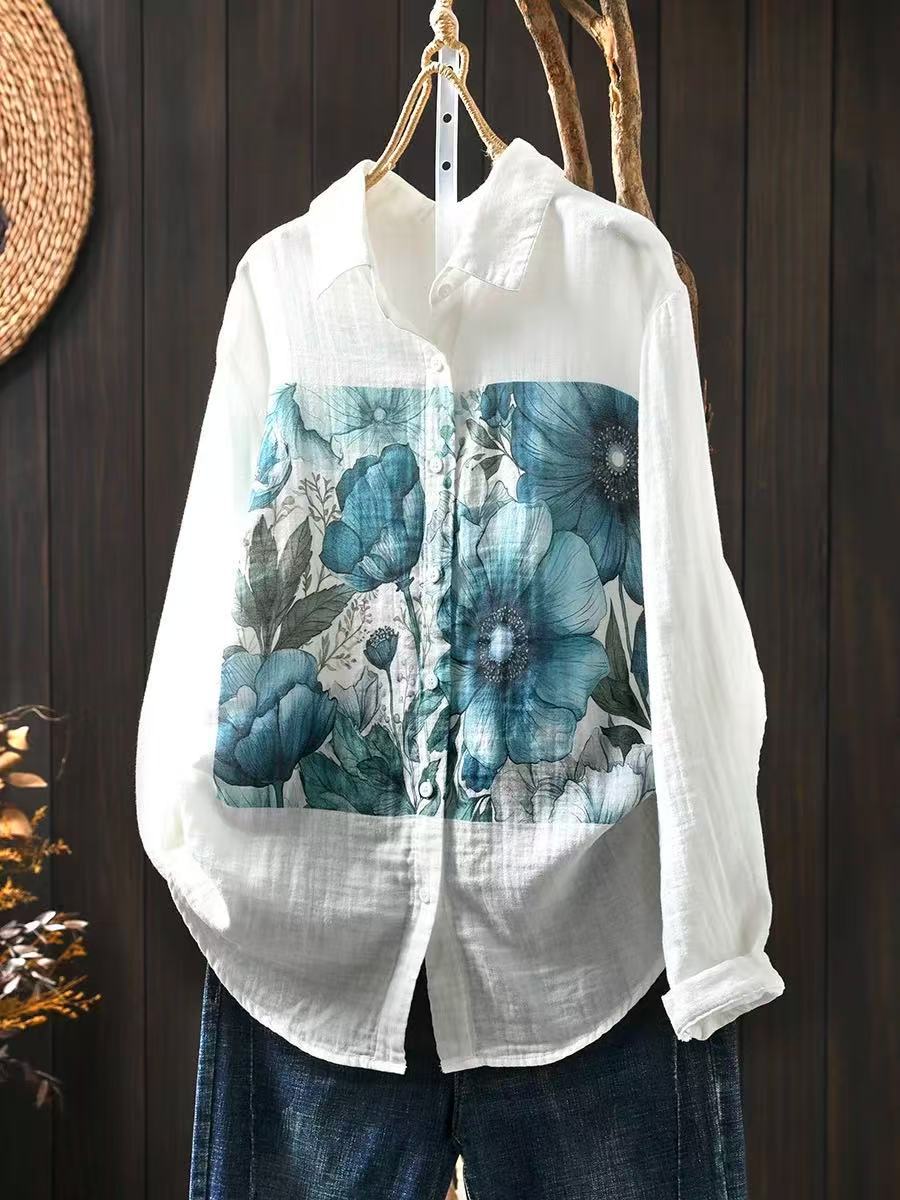 봄 새로운 도착 인쇄 더블 레이어 면 원사 긴 소매 셔츠 여성의 느슨한 슬리밍 예술적 캐주얼 베이스 탑 6666