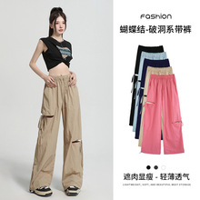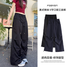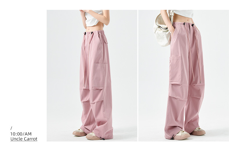 미국 낙하산, 여성의 봄과 가을 2025 새로운 높은 허리 느슨한 직선 야외 등산 넓은 다리 바지스토어 가기
