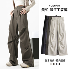 미국 낙하산, 여성의 봄과 가을 2025 새로운 높은 허리 느슨한 직선 야외 등산 넓은 다리 바지