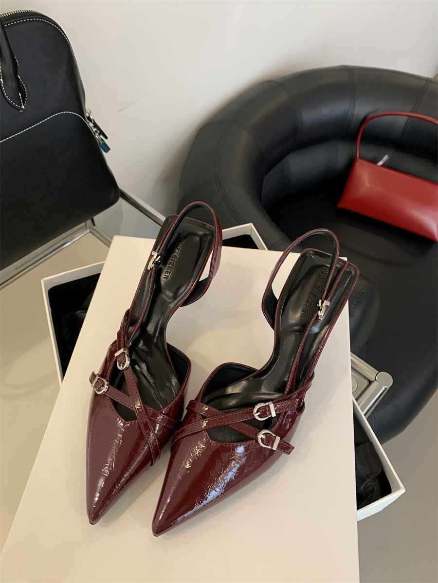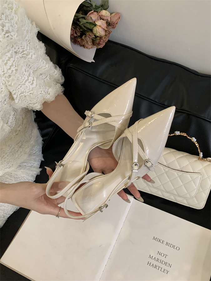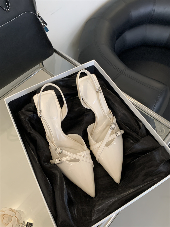 2025 프랑스 패션 우아한 바오터우 샌들 여성 벨트 버클 얕은 하이힐 뾰족한 스틸레토 힐 빈 신발스토어 가기