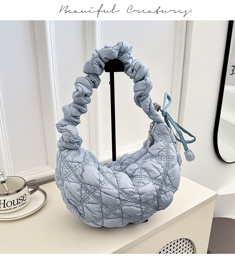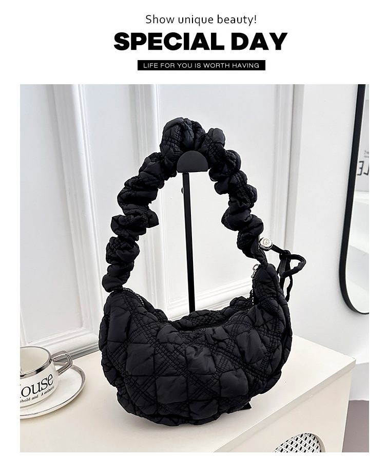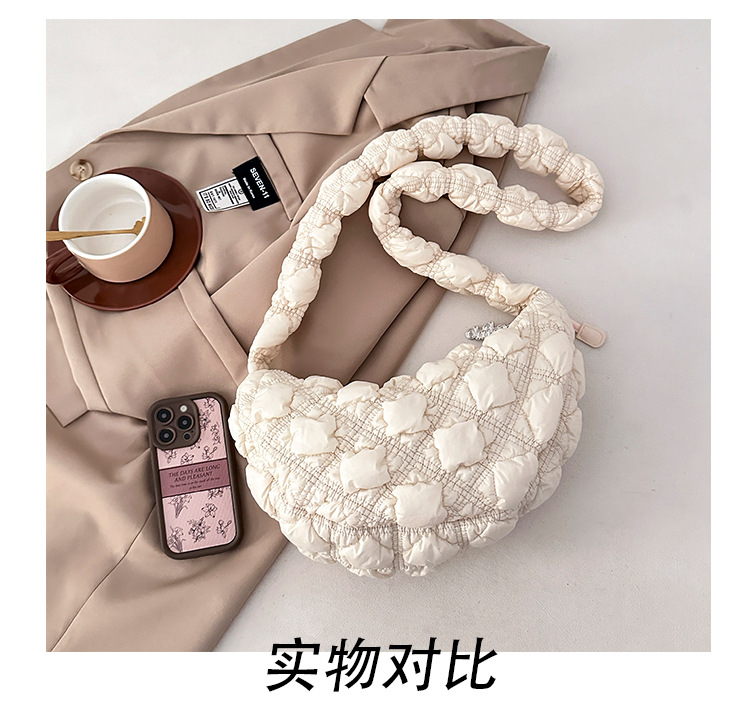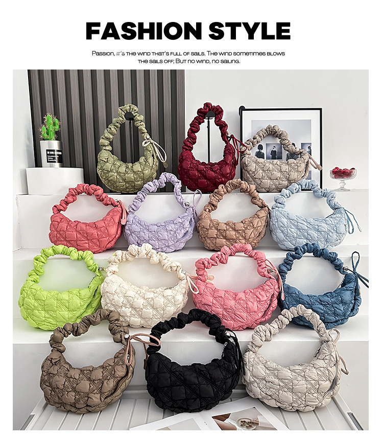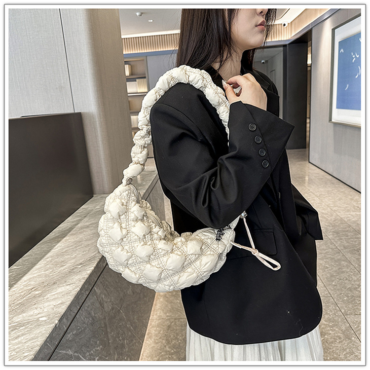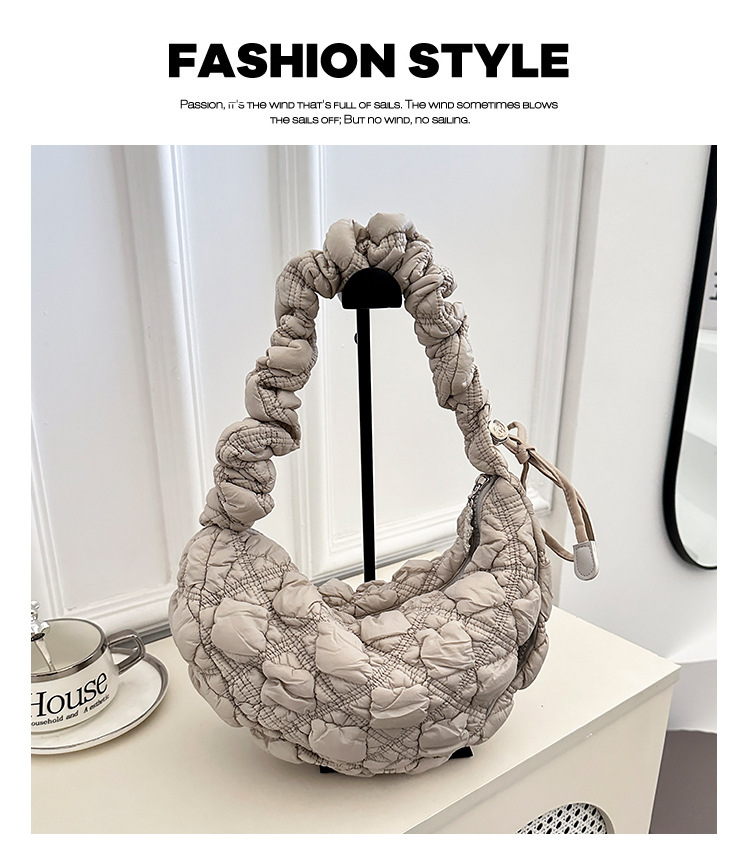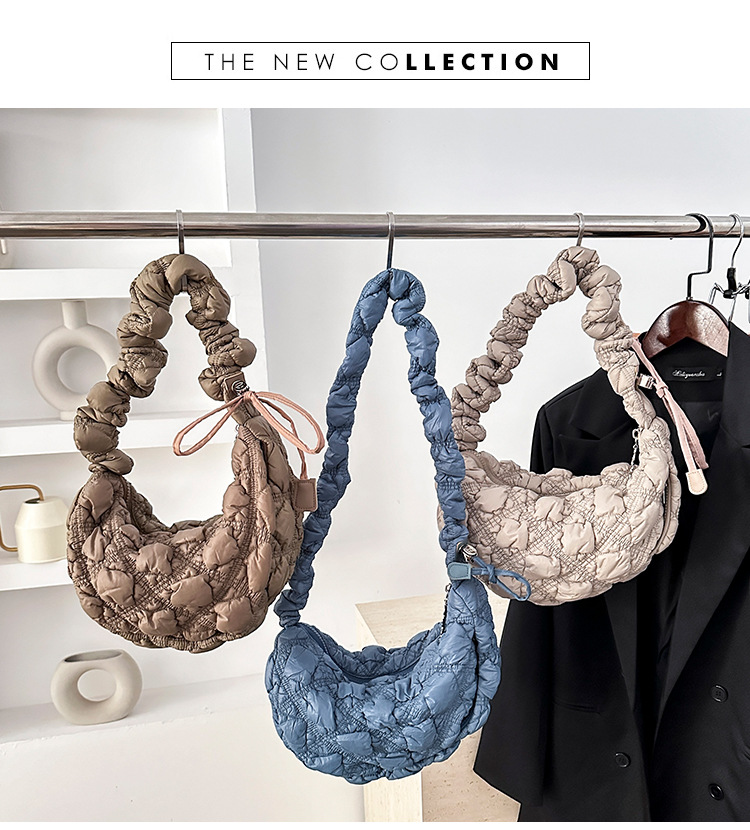 CAHMLO 패션 플리츠 클라우드 백 올 매치 버블 언더암 백 다운 코튼 백 숄더 크로스 바디 만두 백스토어 가기