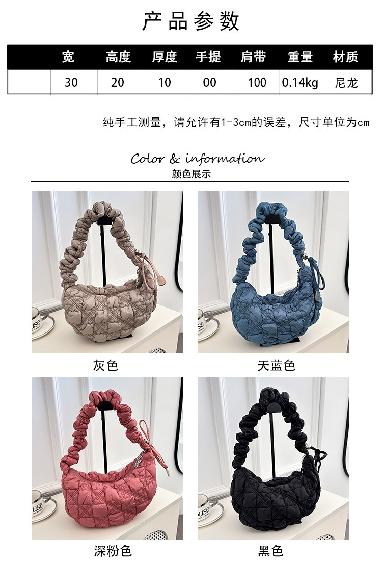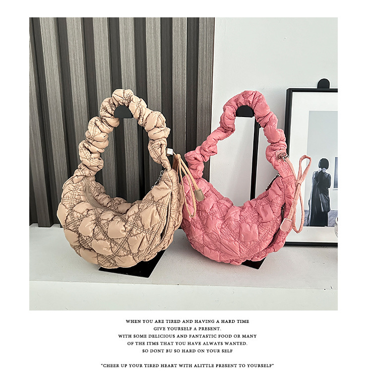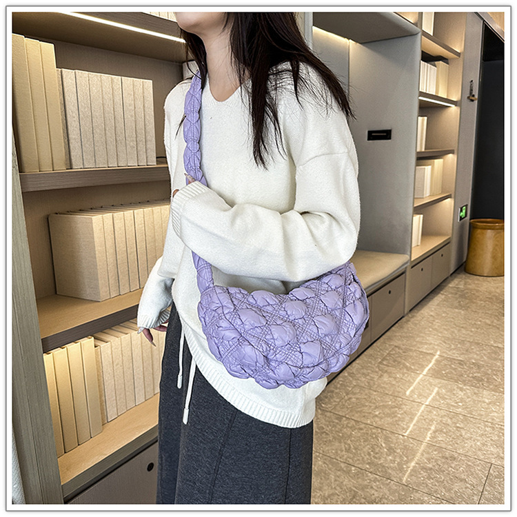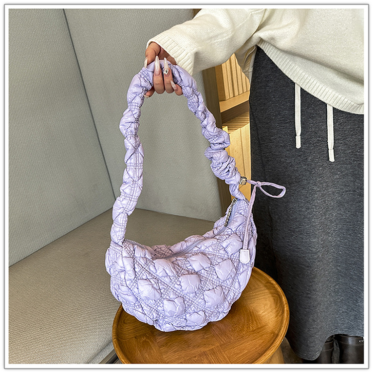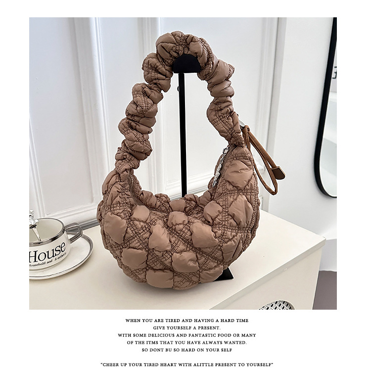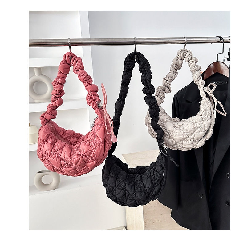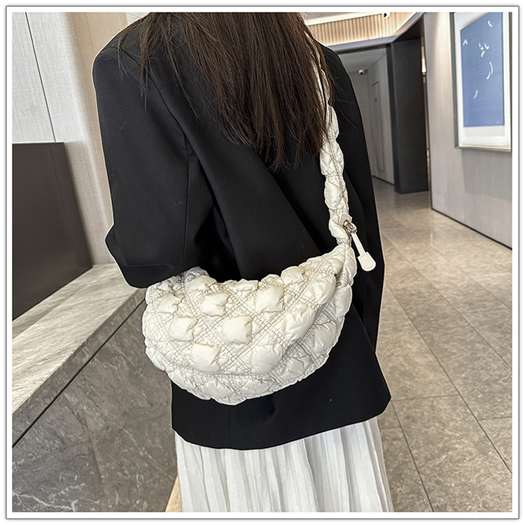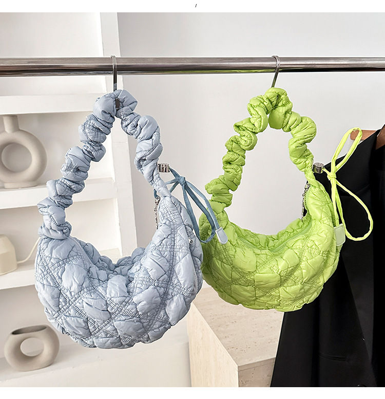 CAHMLO 패션 플리츠 클라우드 백 올 매치 버블 언더암 백 다운 코튼 백 숄더 크로스 바디 만두 백스토어 가기