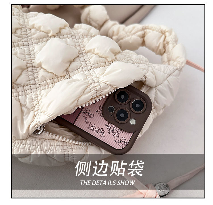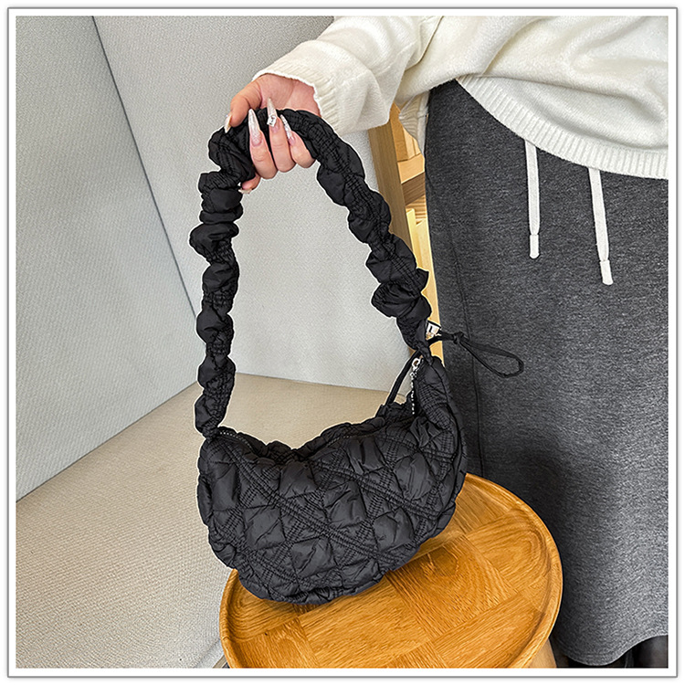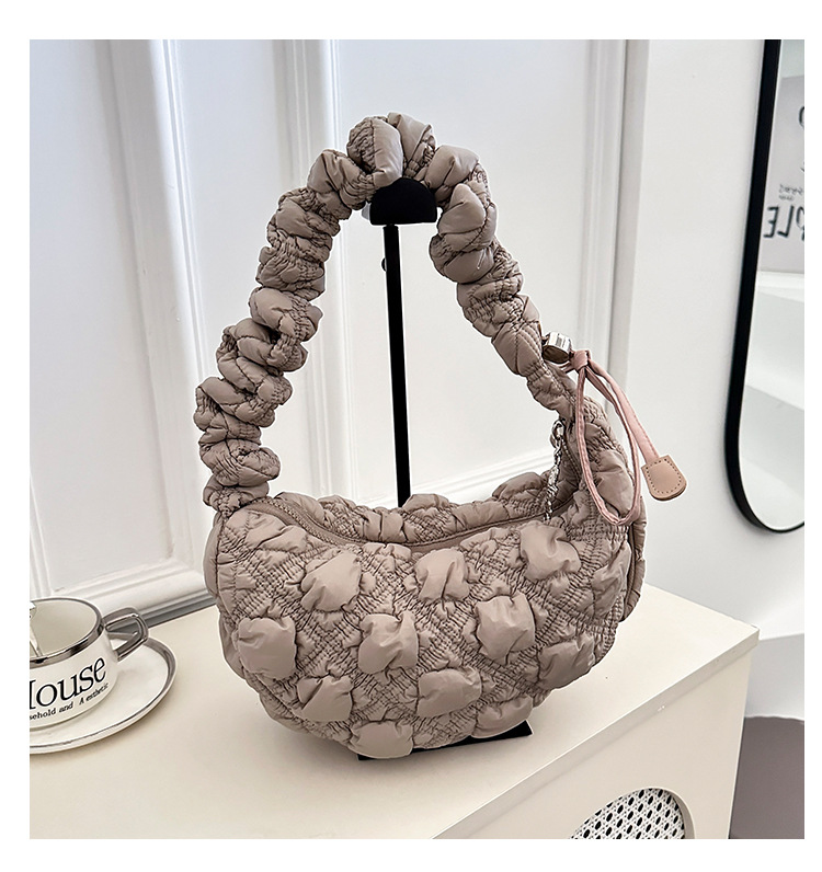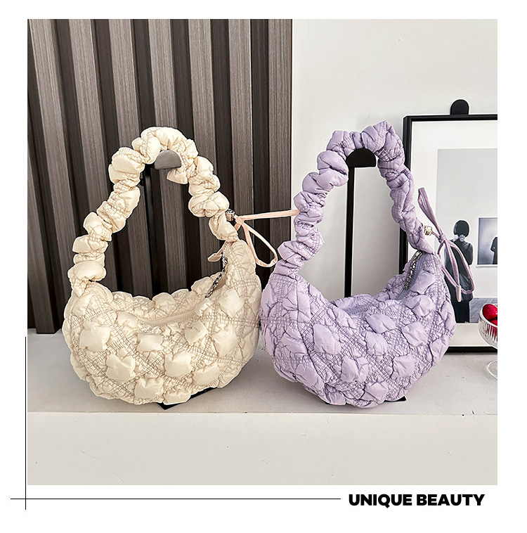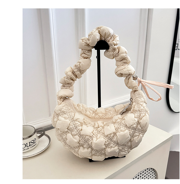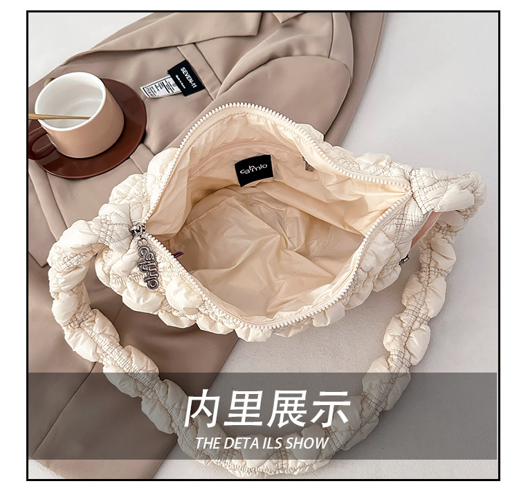 CAHMLO 패션 플리츠 클라우드 백 올 매치 버블 언더암 백 다운 코튼 백 숄더 크로스 바디 만두 백