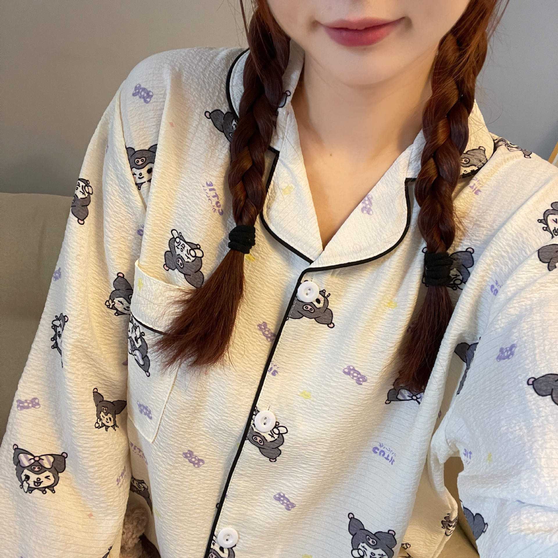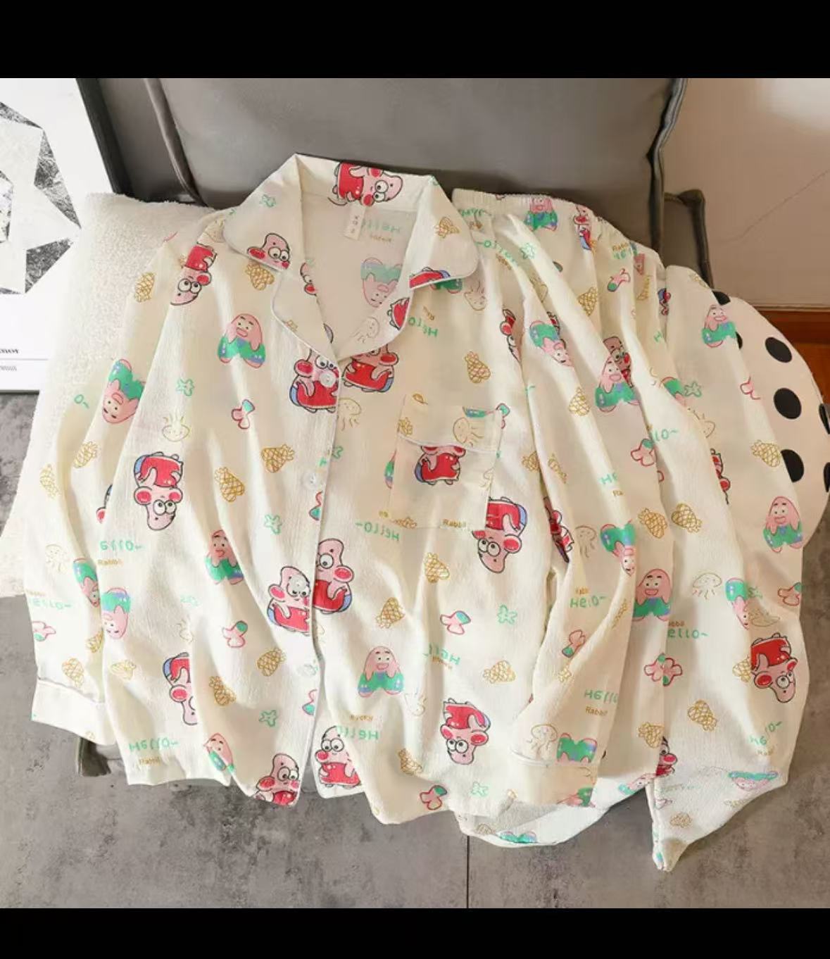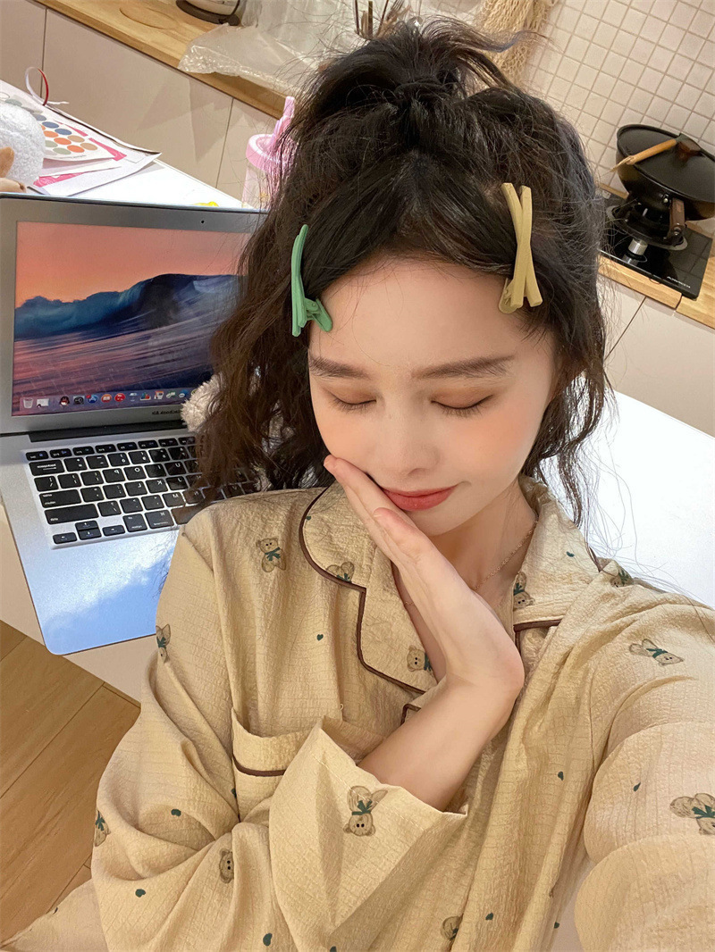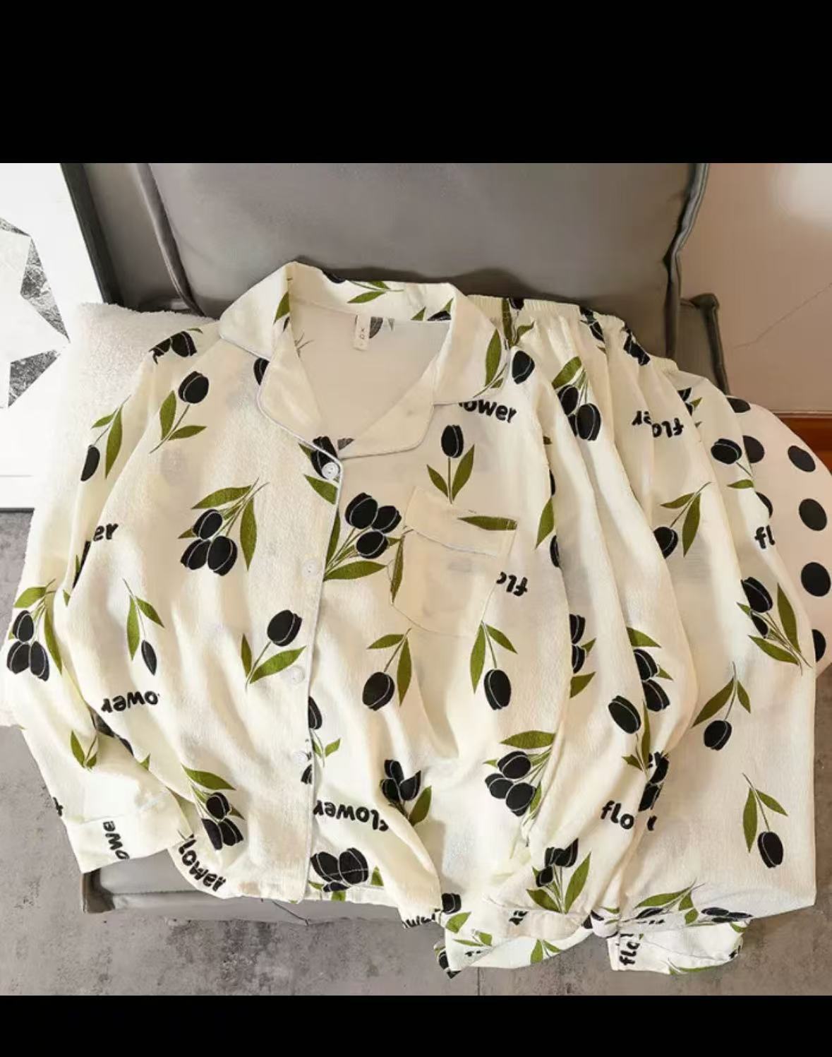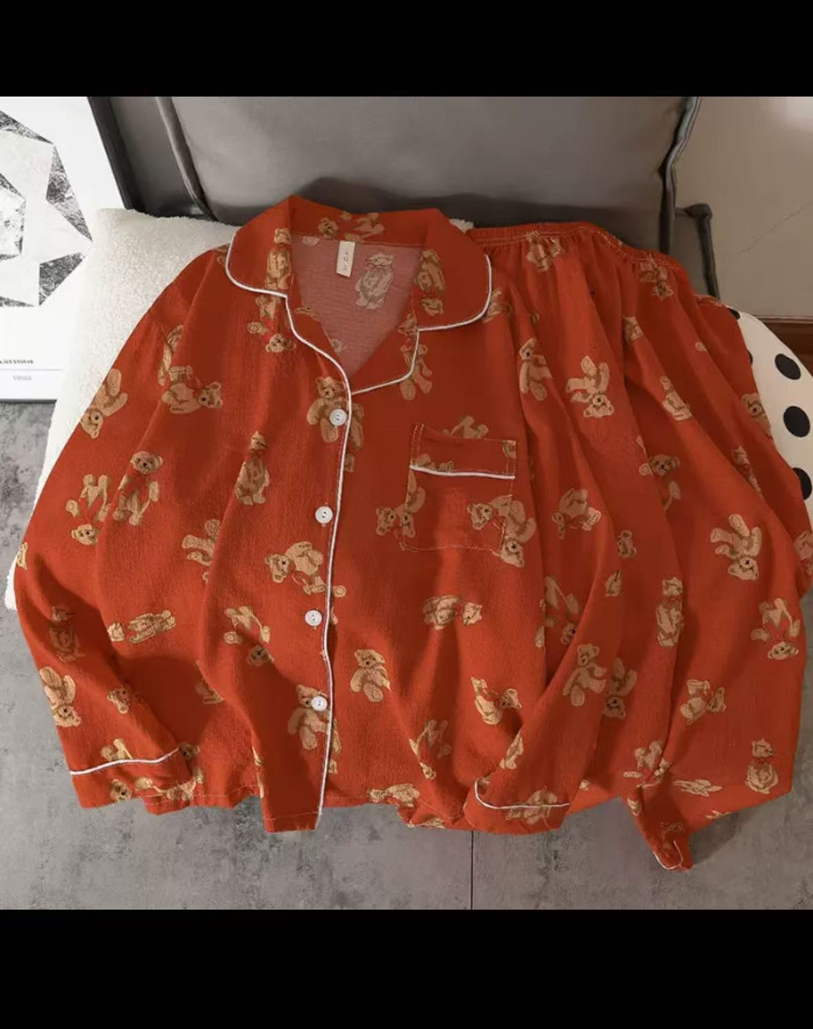 봄과 가을 새로운 Ins 스타일 파자마 여성의 새로운 버블 코튼 긴 소매 달콤한 스타일 간단한 홈 의류 세트 외부 착용스토어 가기