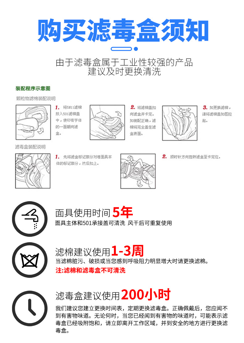 3M6004CN 활성탄 필터 상자 암모니아 및 메틸 아민 특수 가스 마스크 액세서리 2/가방스토어 가기