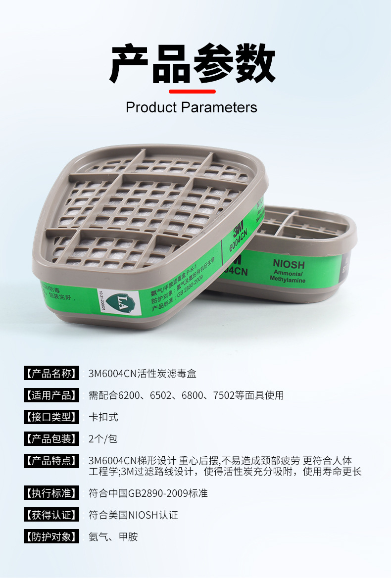 3M6004CN 활성탄 필터 상자 암모니아 및 메틸 아민 특수 가스 마스크 액세서리 2/가방