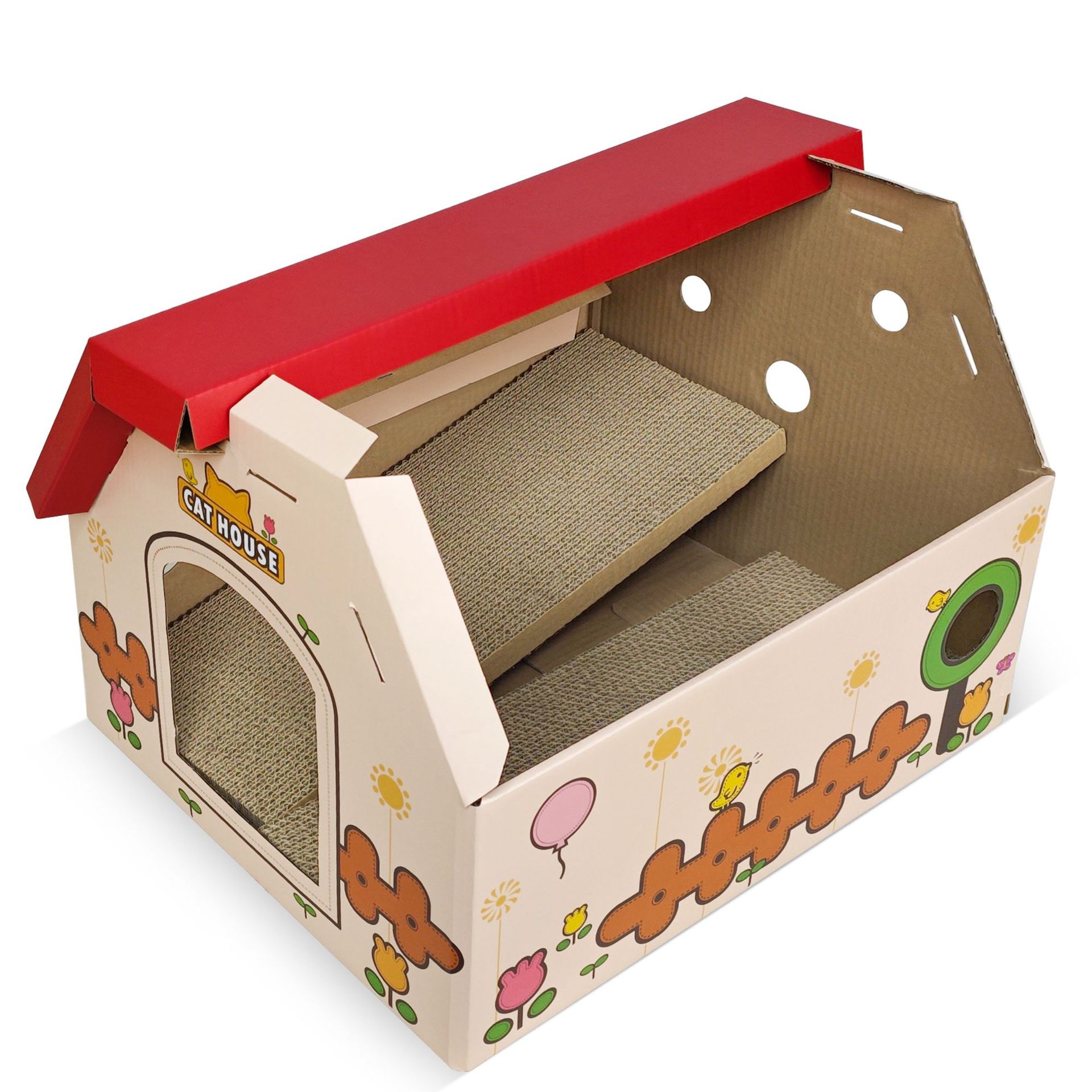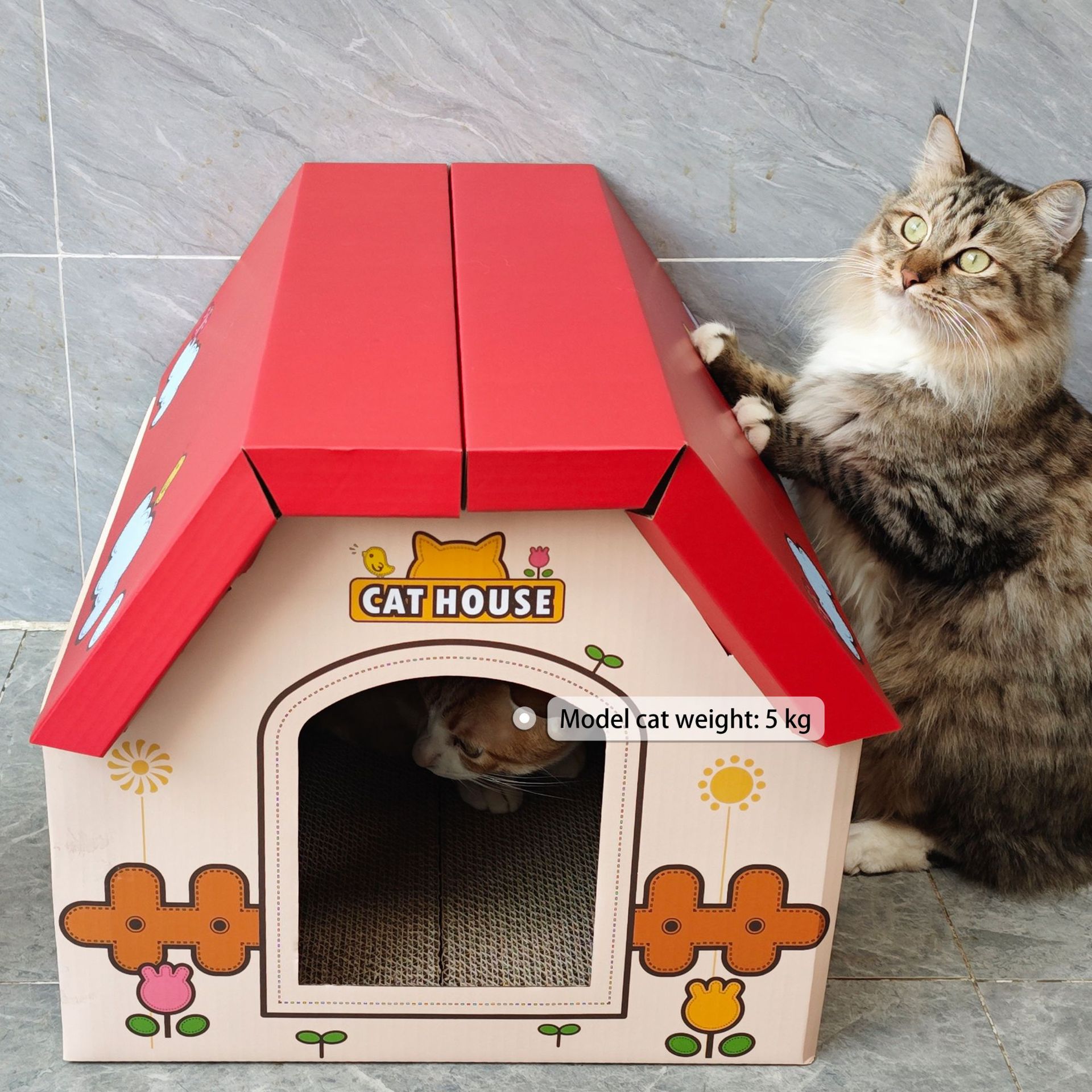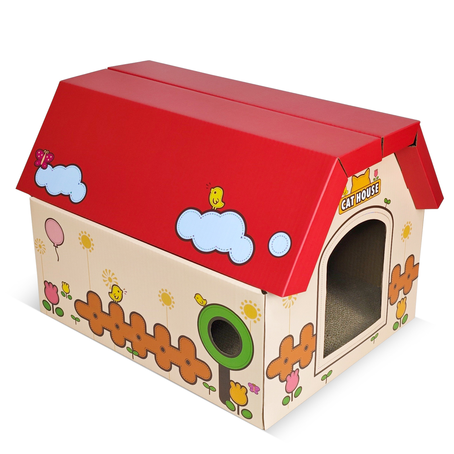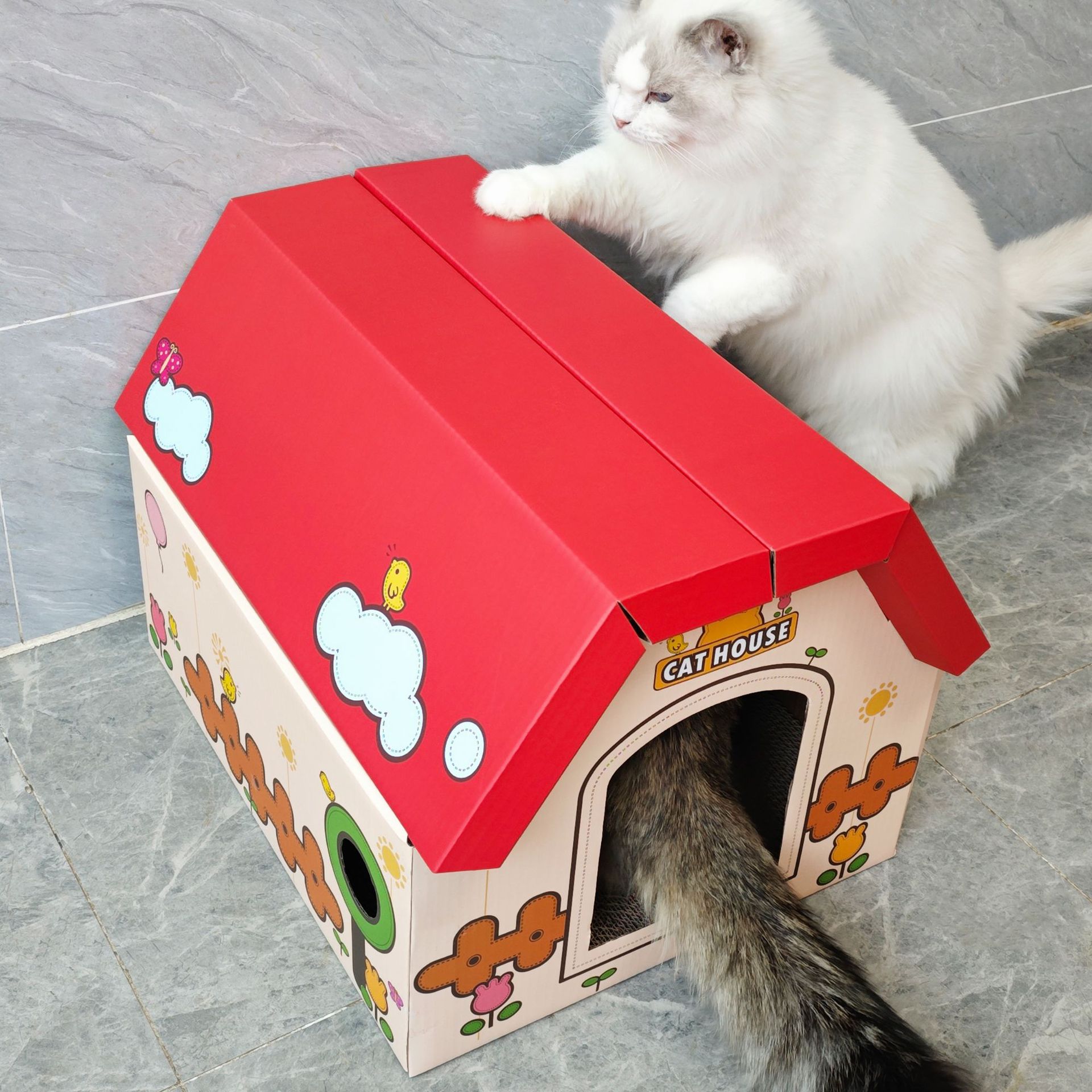 골판지 고양이 긁기 보드 고양이 둥지 고양이 긁기 보드 교체 가능한 접이식 교통 국경 간 폭발 레드 플랫 탑 하우스