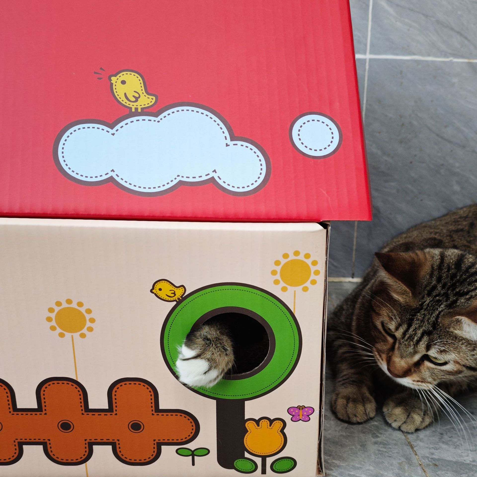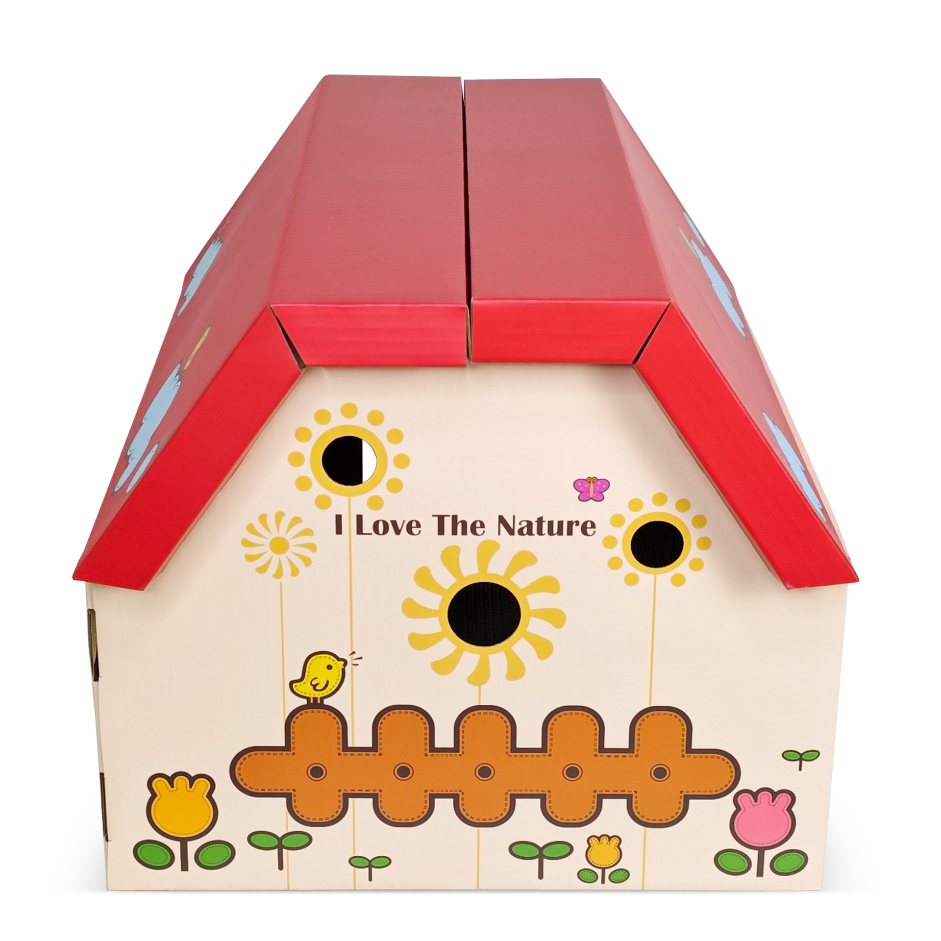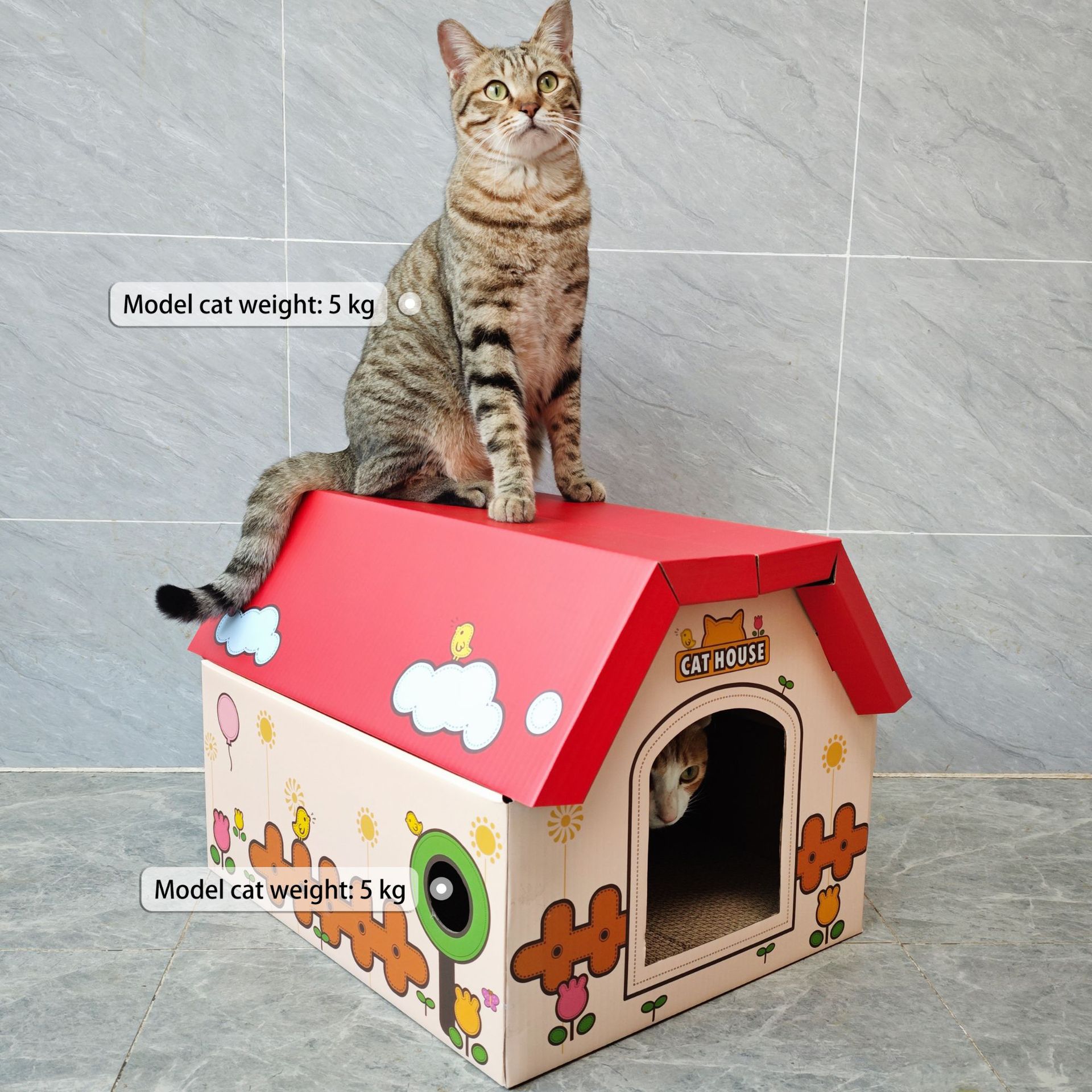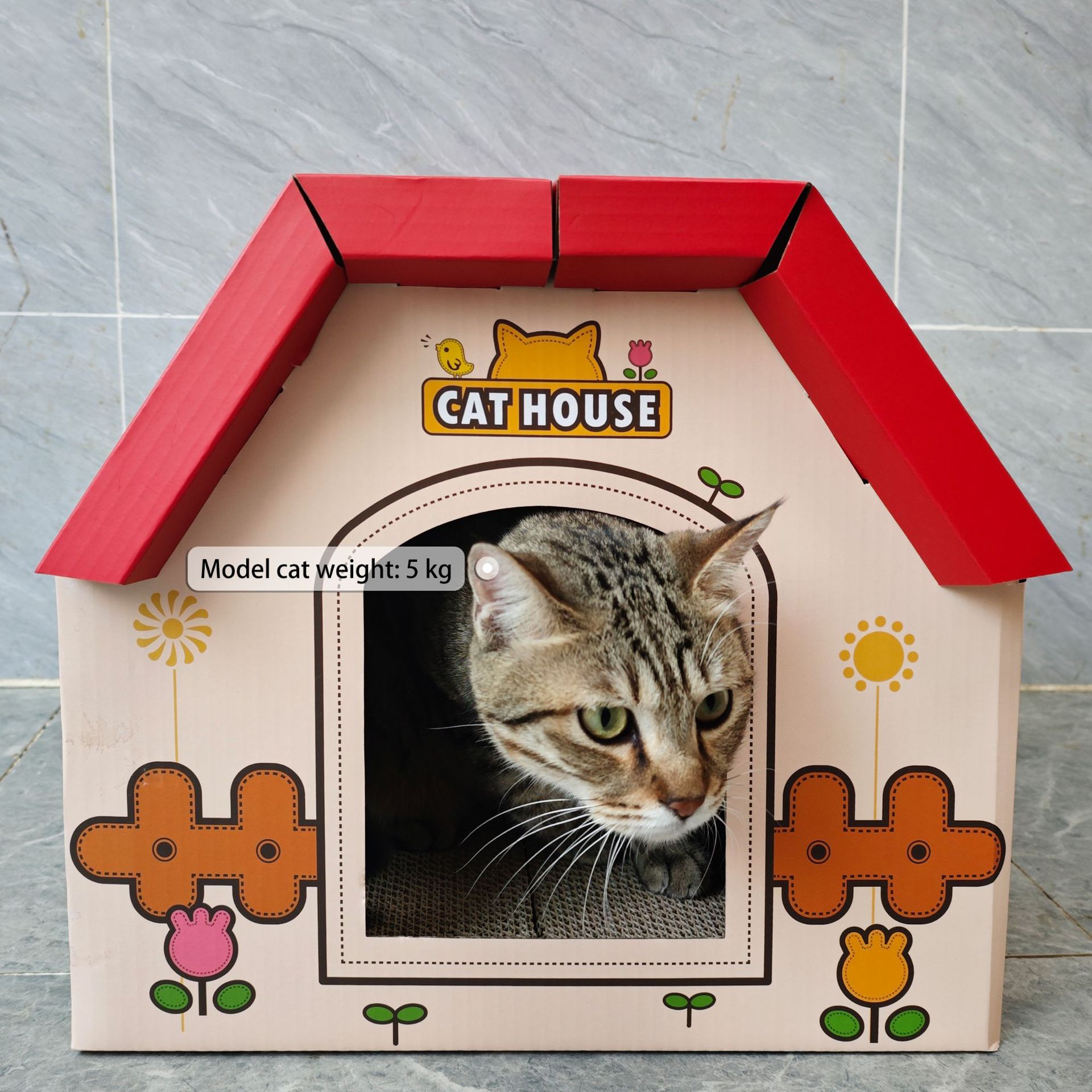 골판지 고양이 긁기 보드 고양이 둥지 고양이 긁기 보드 교체 가능한 접이식 교통 국경 간 폭발 레드 플랫 탑 하우스