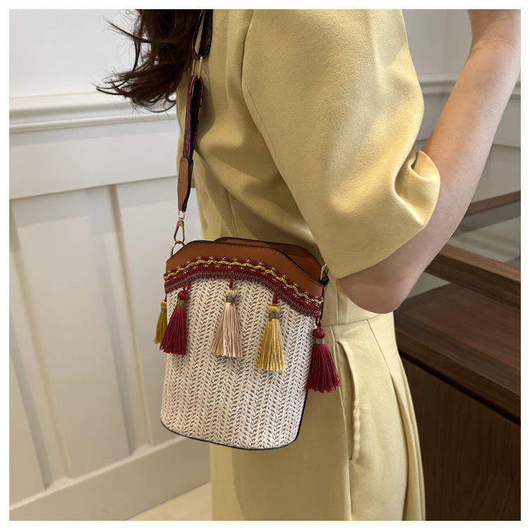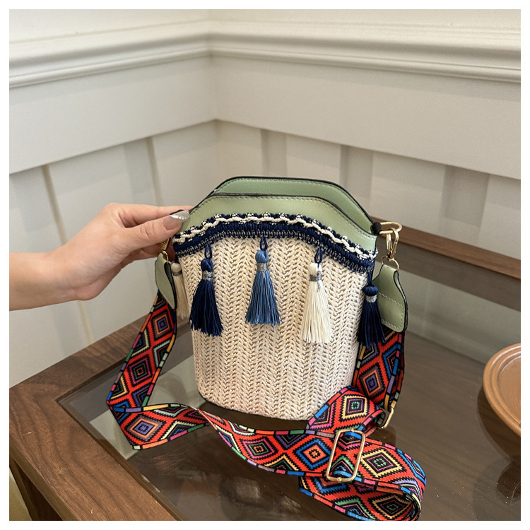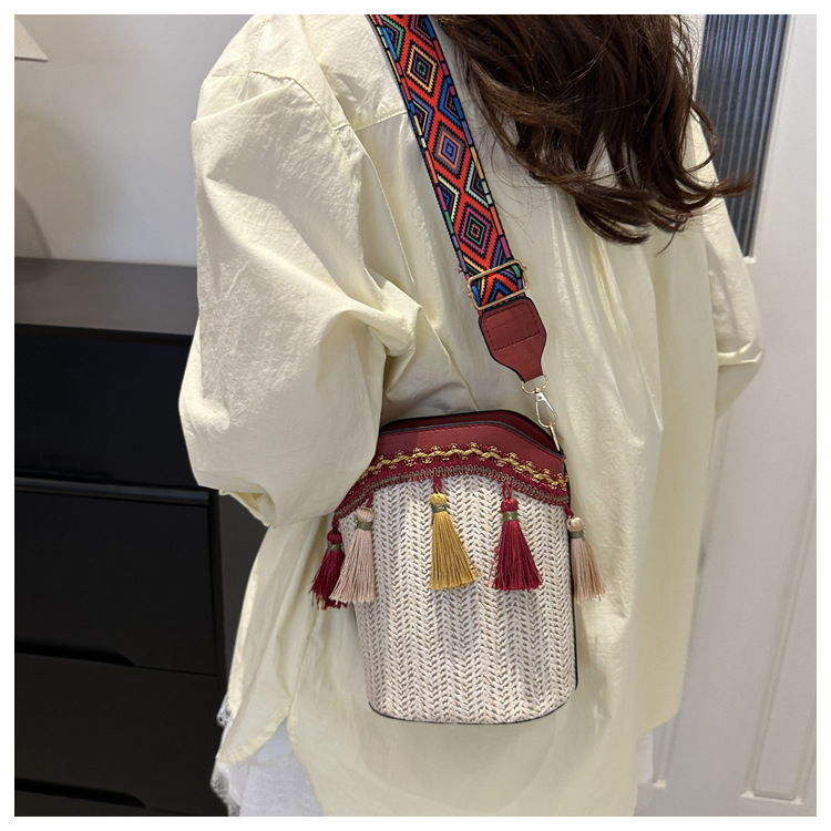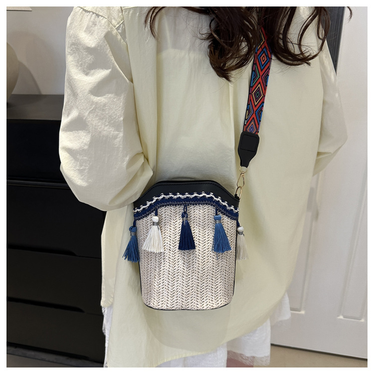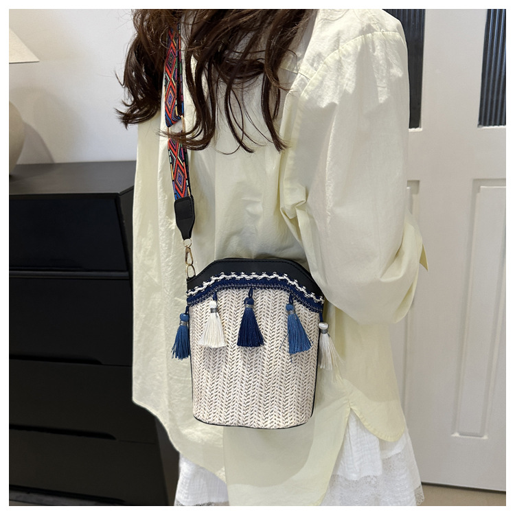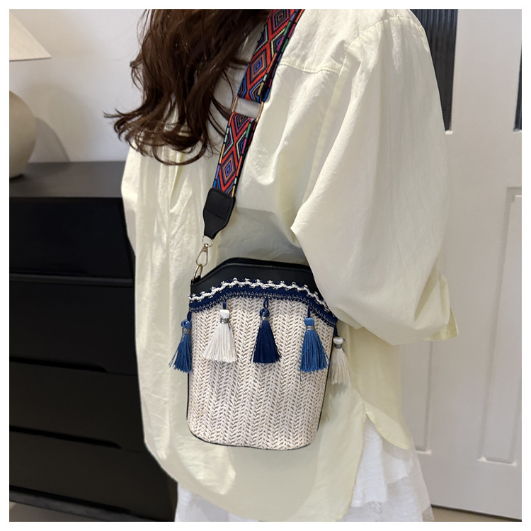 민족 밀짚 어깨 가방 여성의 2025 새로운 대용량 양동이 크로스 바디 백 트렌디 한 술 여성용 가방 도매스토어 가기