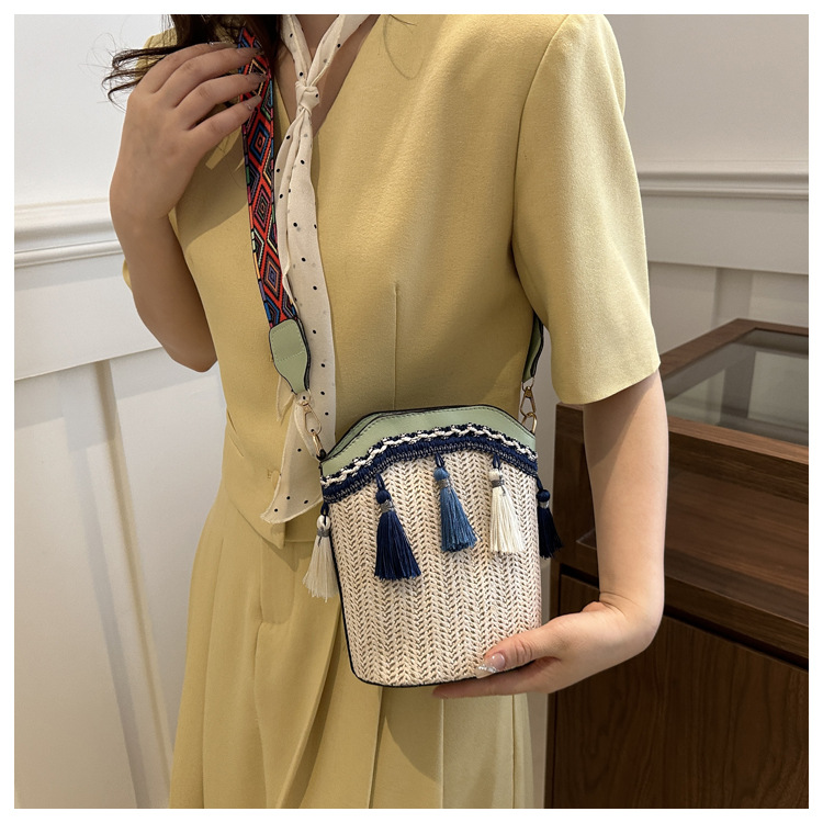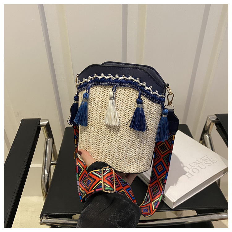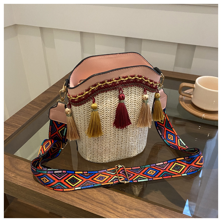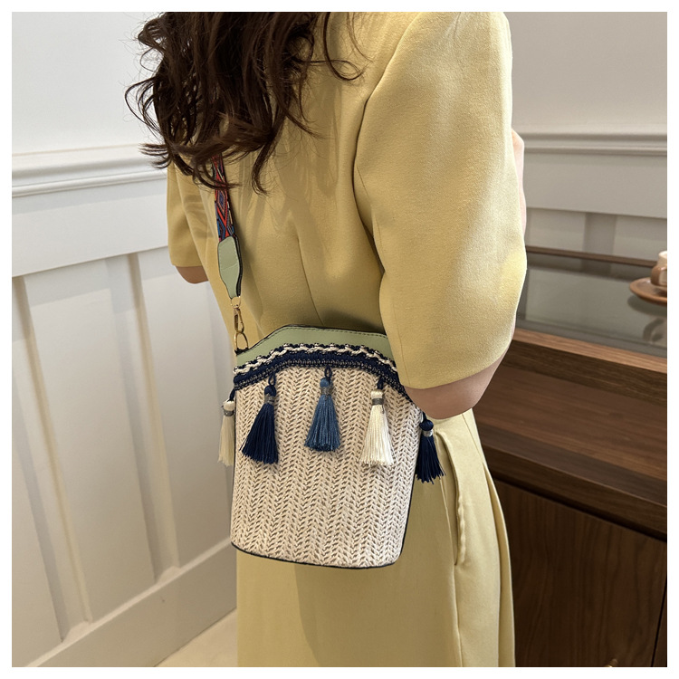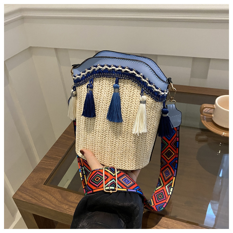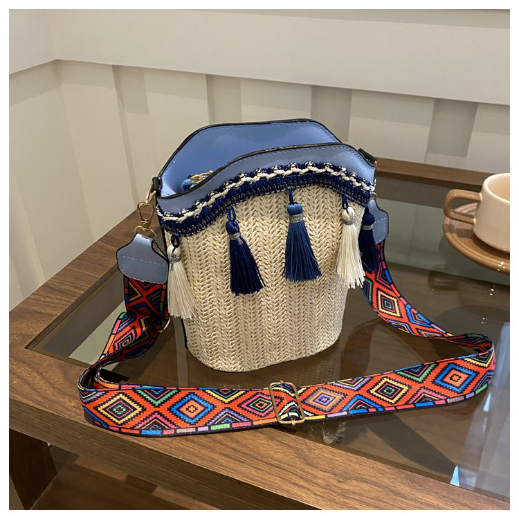 민족 밀짚 어깨 가방 여성의 2025 새로운 대용량 양동이 크로스 바디 백 트렌디 한 술 여성용 가방 도매스토어 가기