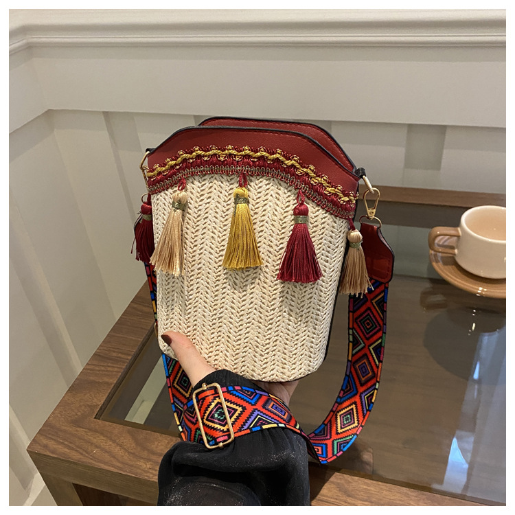 민족 밀짚 어깨 가방 여성의 2025 새로운 대용량 양동이 크로스 바디 백 트렌디 한 술 여성용 가방 도매