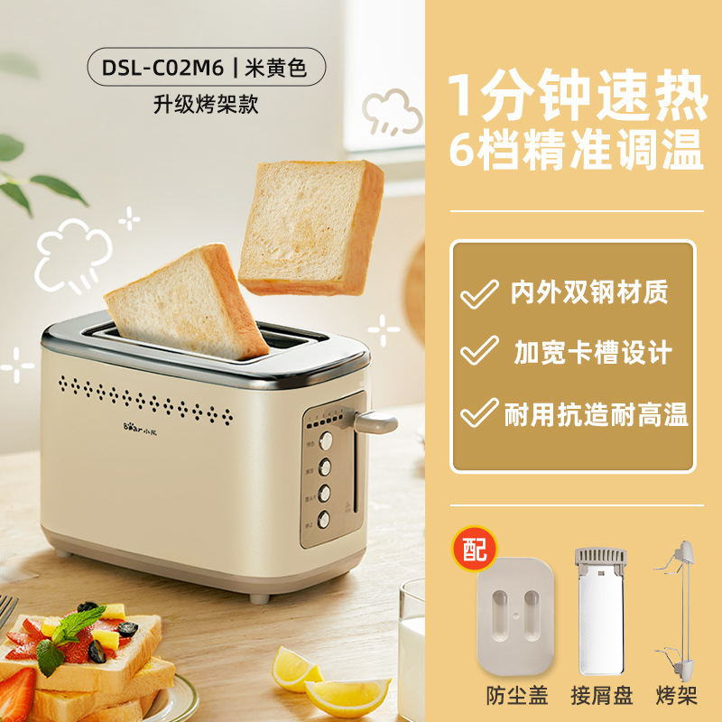 곰 DSL-C02M6 토스터 토스터 토스터 기계 가정용 소형 침 드라이버 스테인레스 스틸 아침 식사 베이지스토어 가기