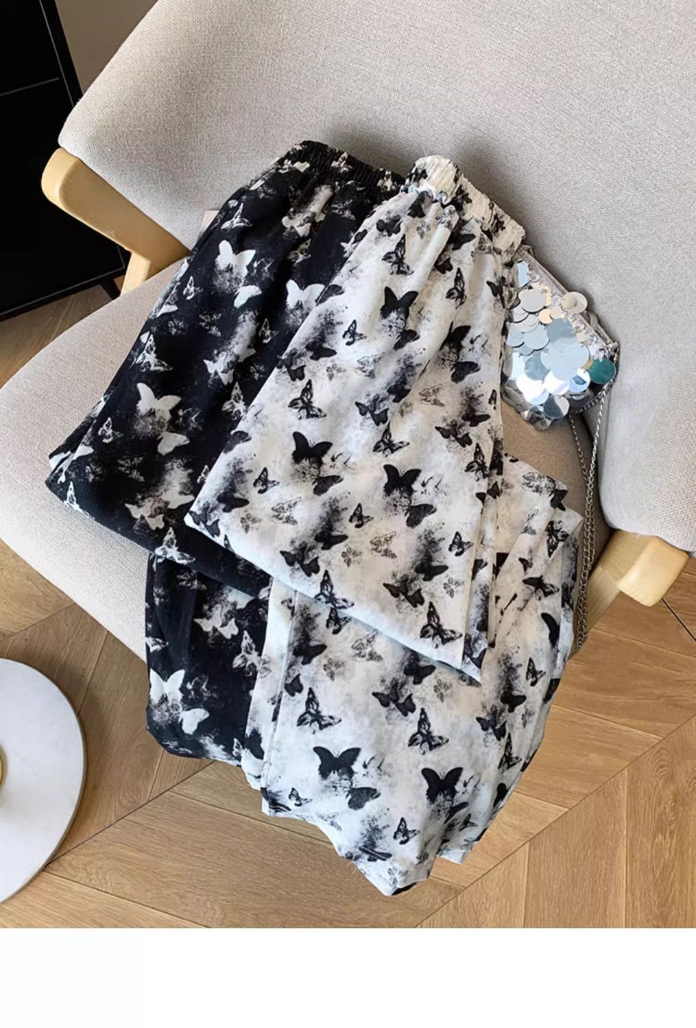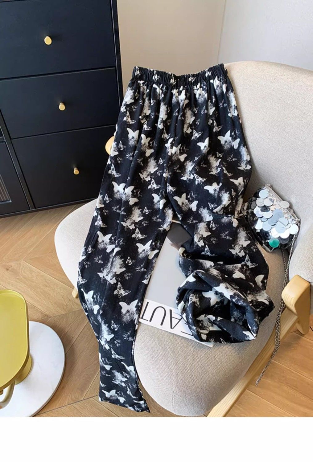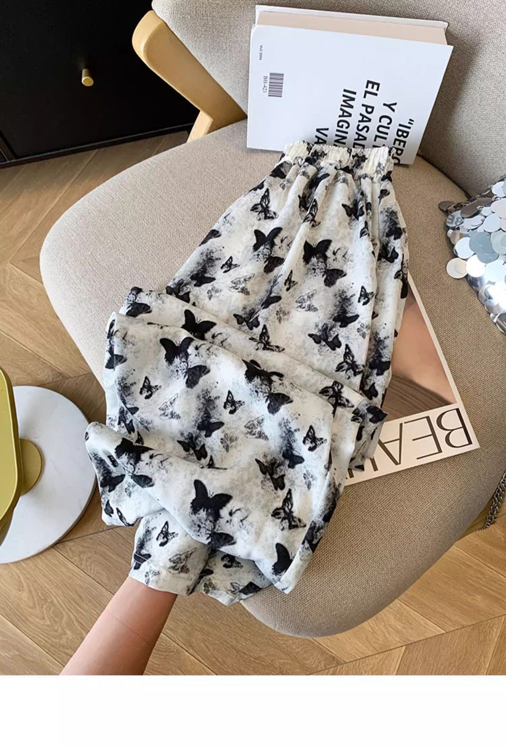 크로스보더 도매 대형 여성복 타이다이 나비 무늬 와이드 팬츠 여성 봄 여름 얇은 루즈핏 하이웨이스트 스트레이트 캐주얼 여성 바지스토어 가기