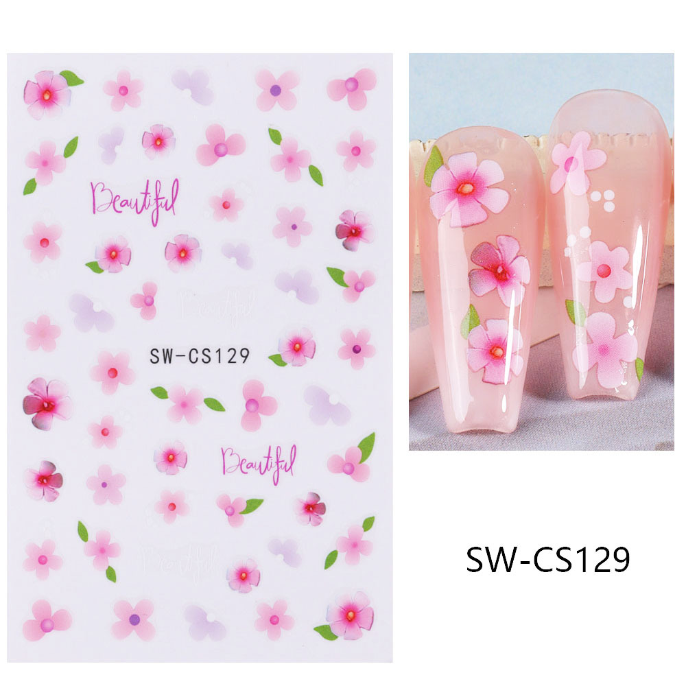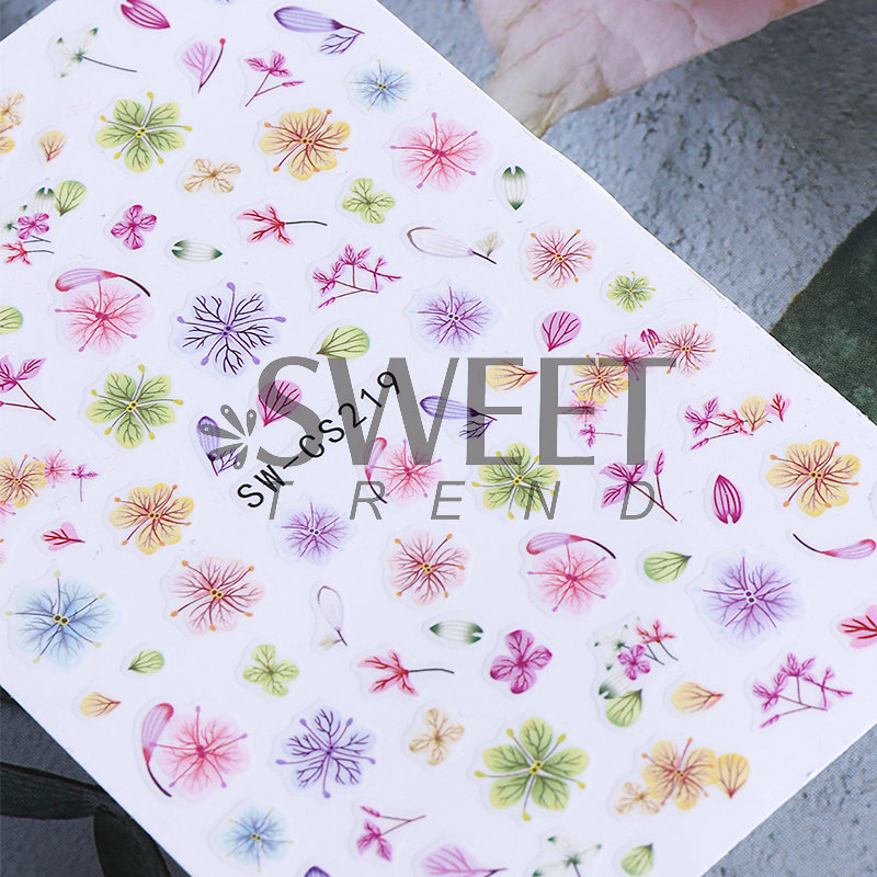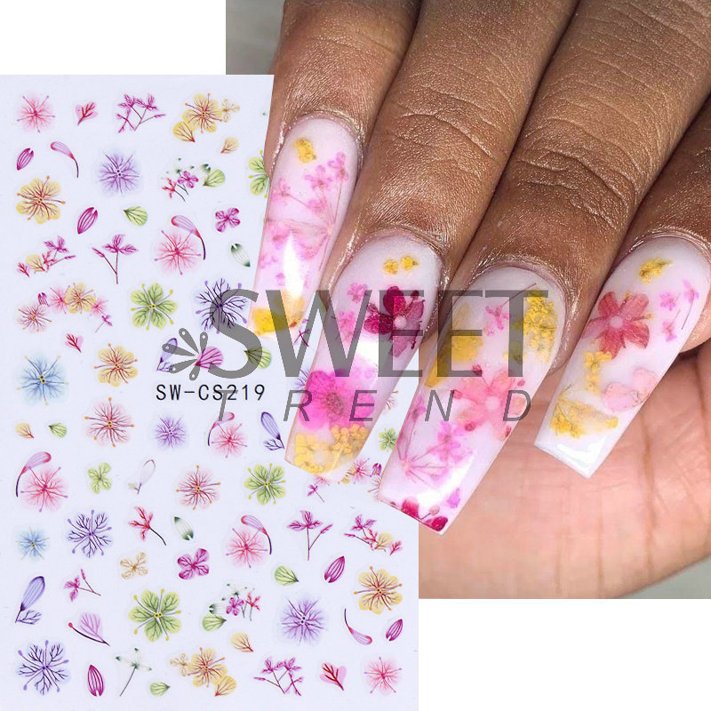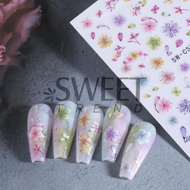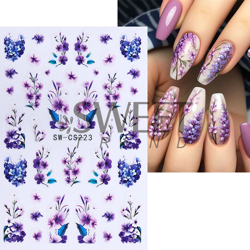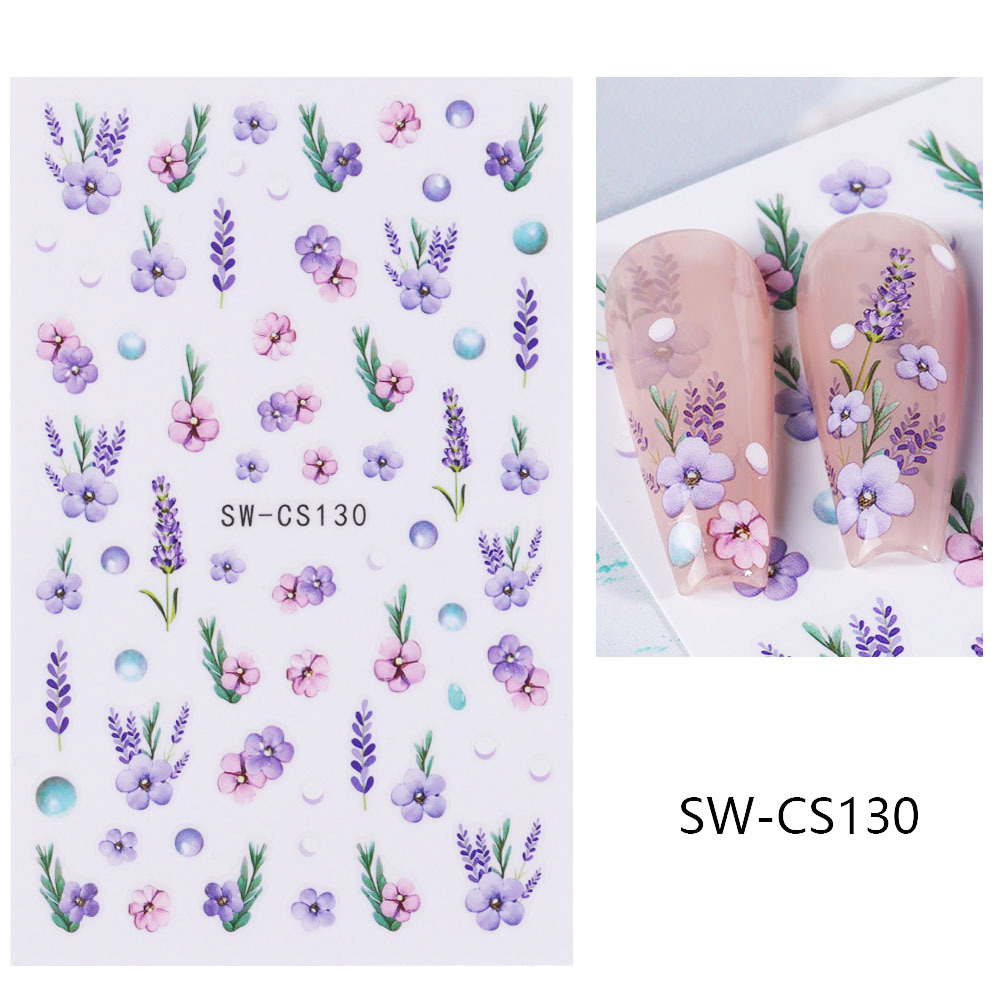 국경 간 뜨거운 판매 네일 스티커 도매 봄과 여름 새로운 수채화 말린 꽃 꽃잎 라벤더 네일 스티커 3D