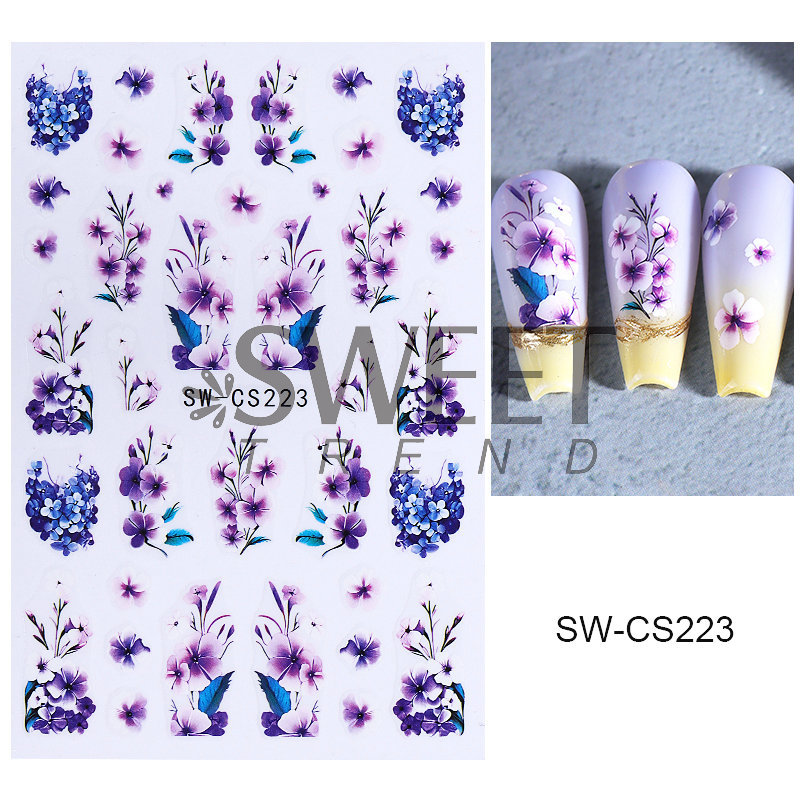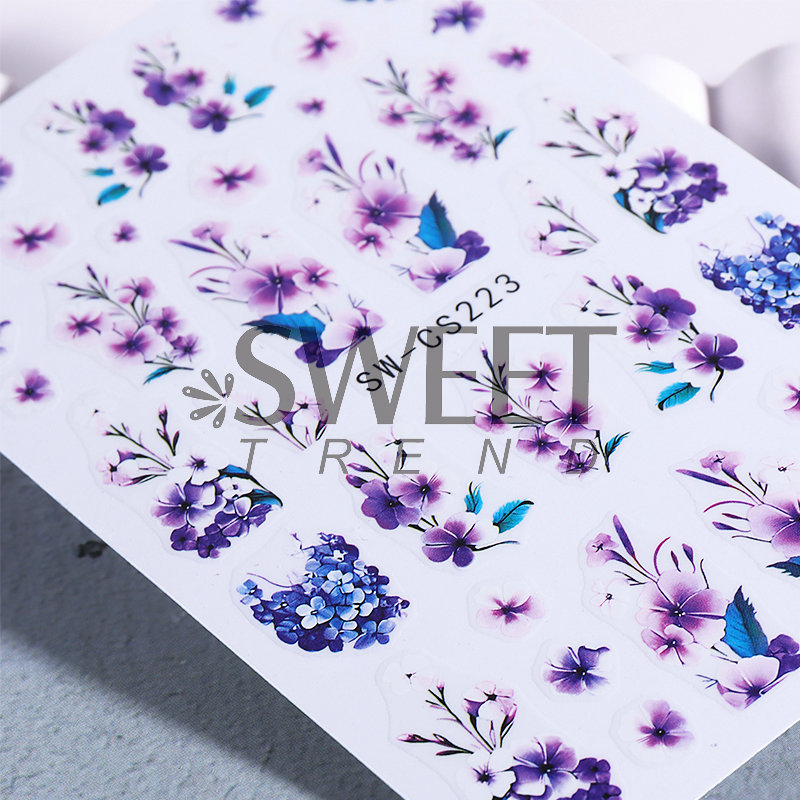 국경 간 뜨거운 판매 네일 스티커 도매 봄과 여름 새로운 수채화 말린 꽃 꽃잎 라벤더 네일 스티커 3D스토어 가기