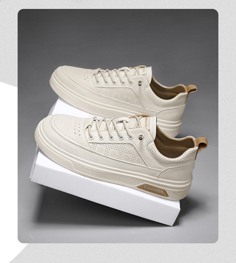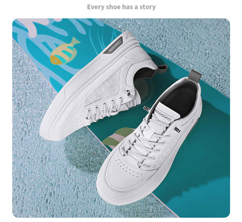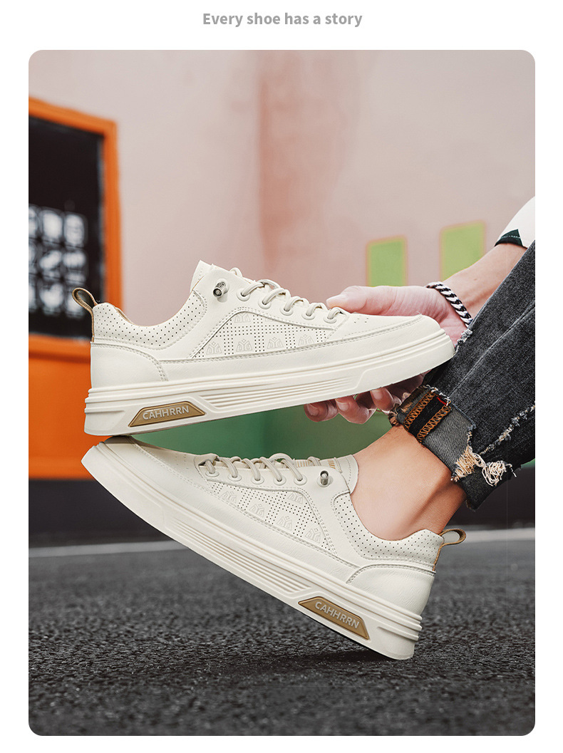 남자 신발 여름 2025 올 매치 청소년 통기성 스포츠 펀치 캐주얼 운동화 플랫 유행 학생 흰색 신발