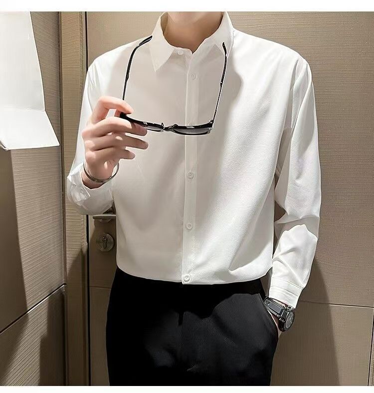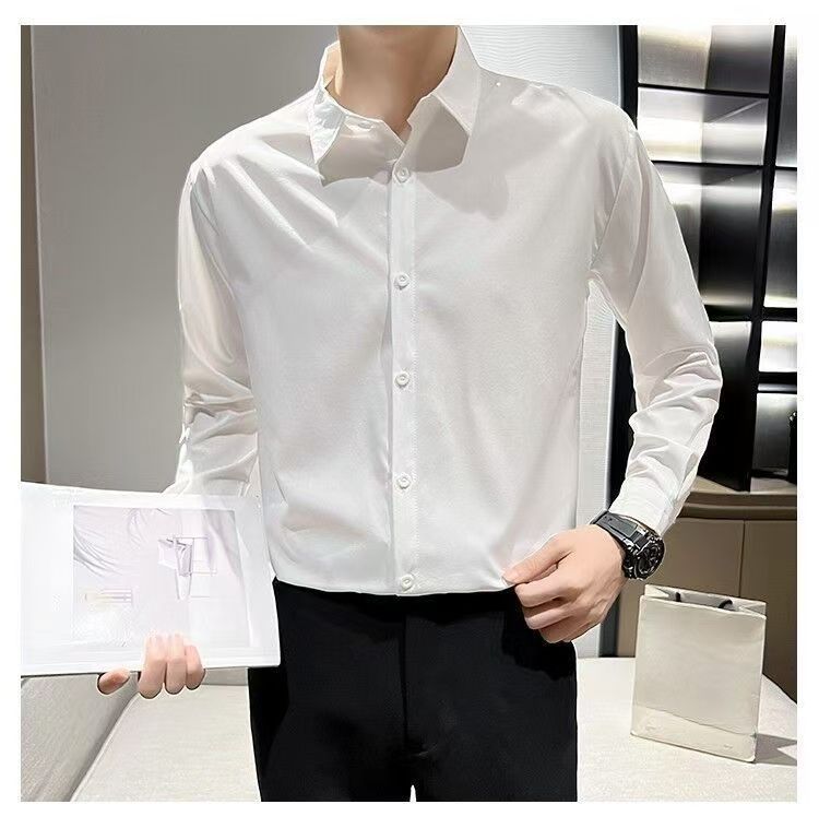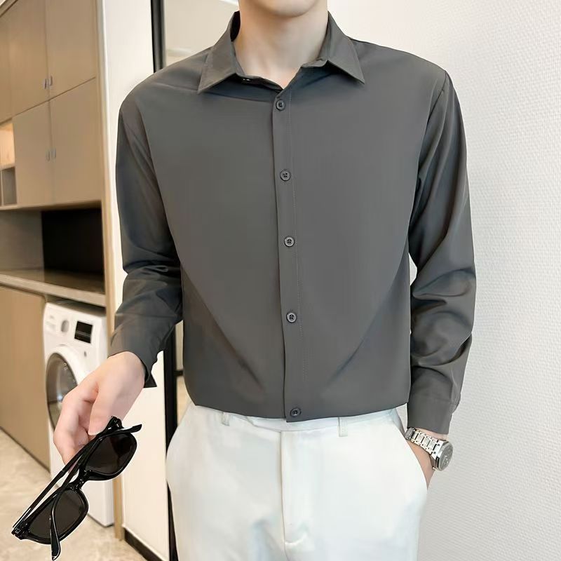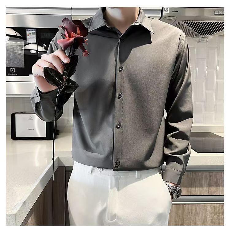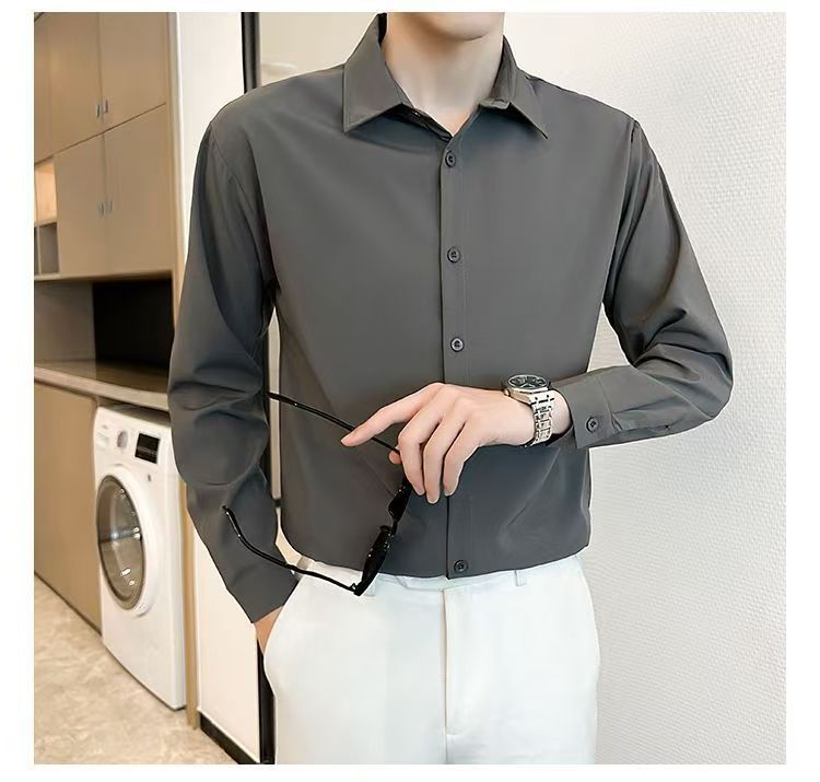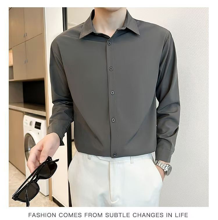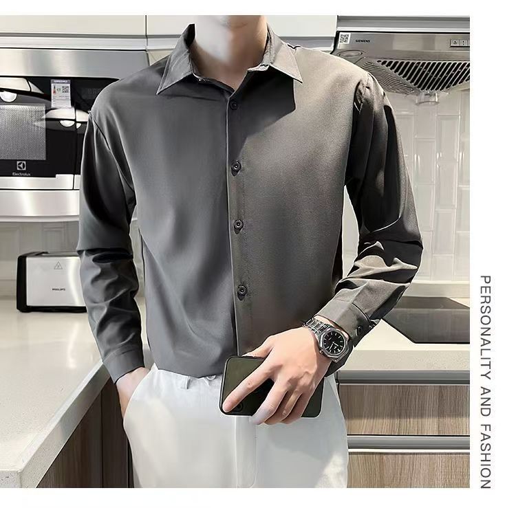 가벼운 성숙한 한국 스타일 긴 소매 셔츠 남자 하이 퀄리티 4 면 봄과 가을 새로운 고급 포장 셔츠 유행 캐주얼스토어 가기