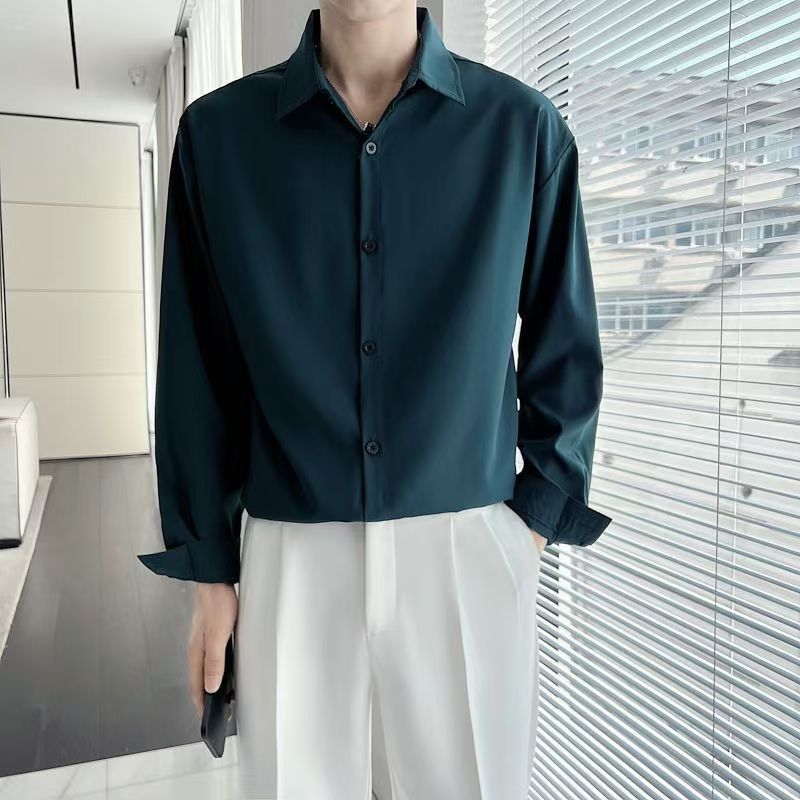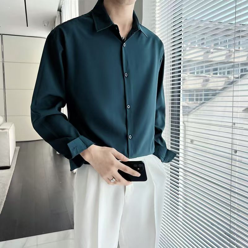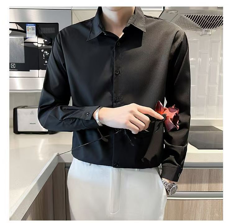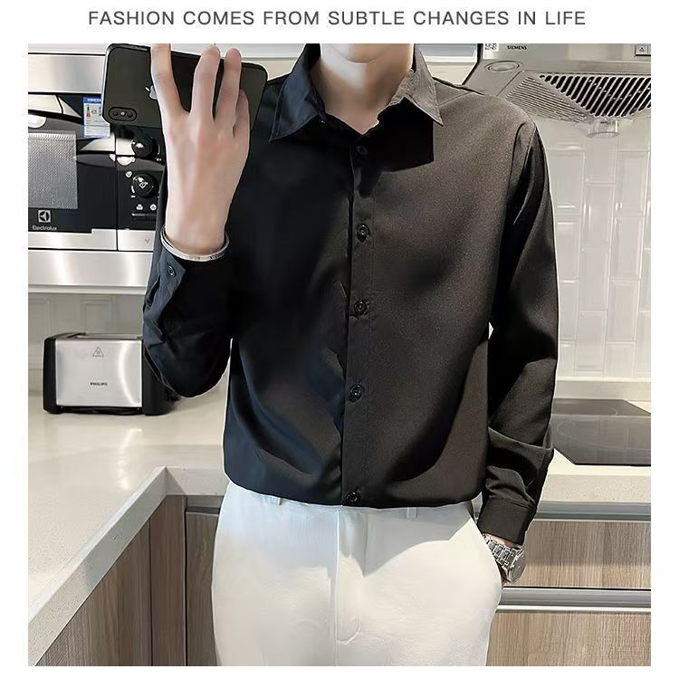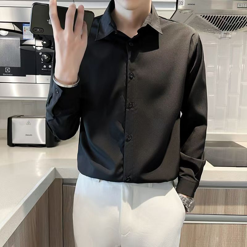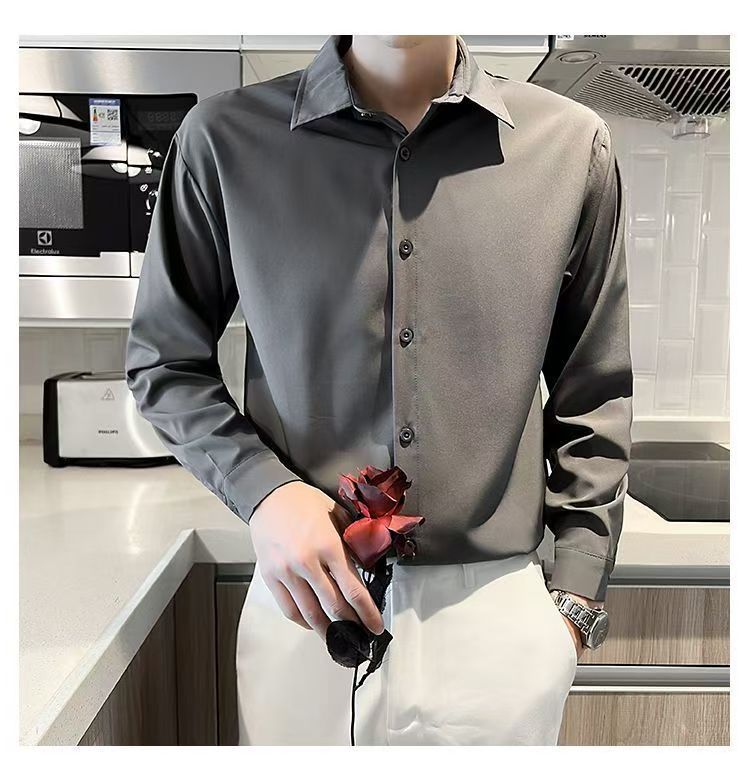 가벼운 성숙한 한국 스타일 긴 소매 셔츠 남자 하이 퀄리티 4 면 봄과 가을 새로운 고급 포장 셔츠 유행 캐주얼스토어 가기