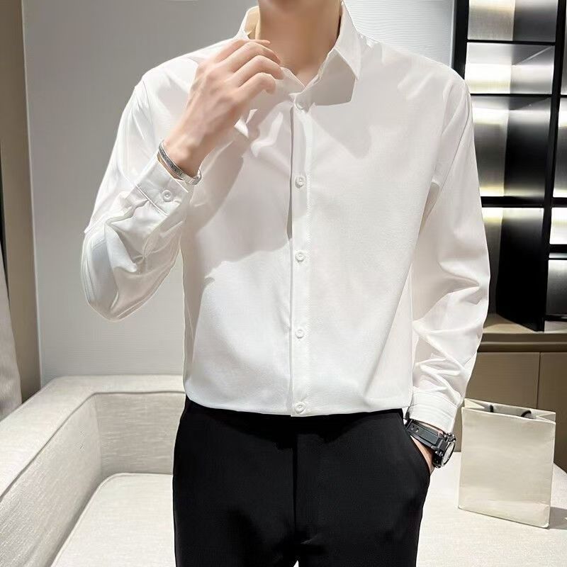 가벼운 성숙한 한국 스타일 긴 소매 셔츠 남자 하이 퀄리티 4 면 봄과 가을 새로운 고급 포장 셔츠 유행 캐주얼
