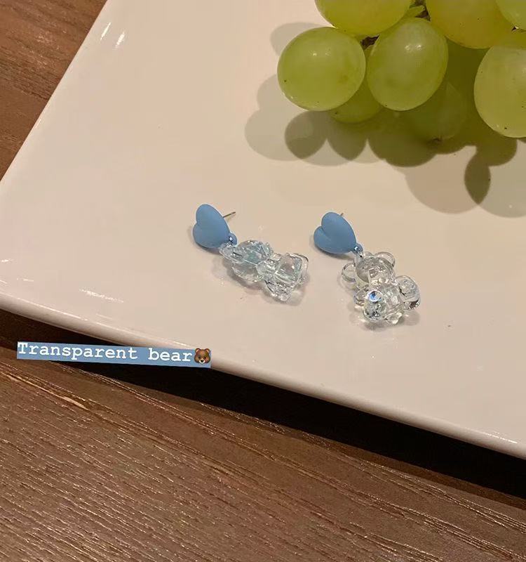 가을과 겨울 얼음 투명 푸른 사랑 곰 귀걸이 여성 귀걸이 틈새 디자인 하이 엔드 귀걸이 귀여운 달콤한 멋진 귀걸이