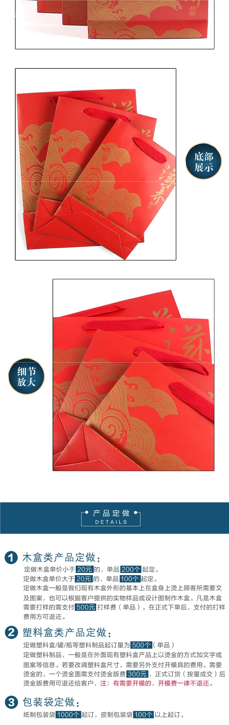 붉은 축제 선물 가방 토닉 토트 가방 새 둥지 Cordyceps 미국 인삼 토트 영양 유니버설 종이 가방