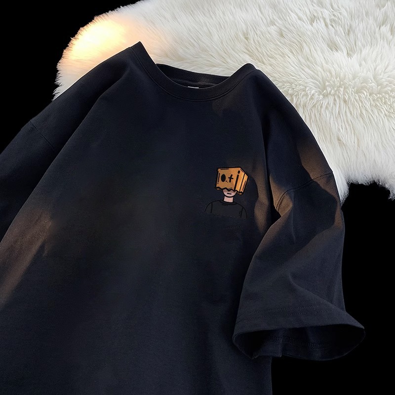 퓨어 코튼 티셔츠 남자 2025 년 여름 새로운 반팔 티셔츠 탑 옷 느슨한 올매치 트렌디 브랜드 남성복 중학교 및 고등학생스토어 가기